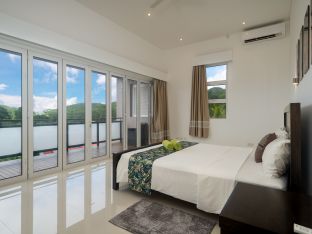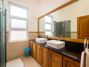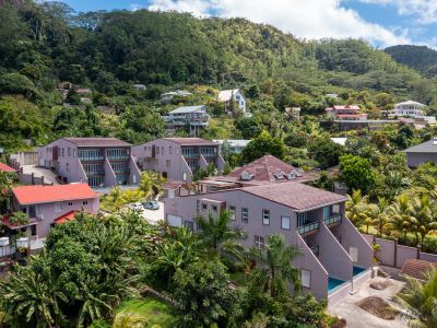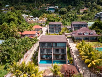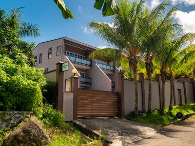 The tasteful, fully air-conditioned ‘Cliffhanger Villas’ are nestled picturesquely on a hillside on Mahé. The airport is only 11km away, the nearest beach, Grand Anse, 6km. The city centre of Victoria is only a quarter of an hour away and a beautiful hiking trail can be reached in just 5 minutes.