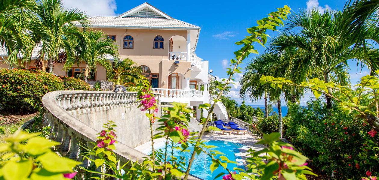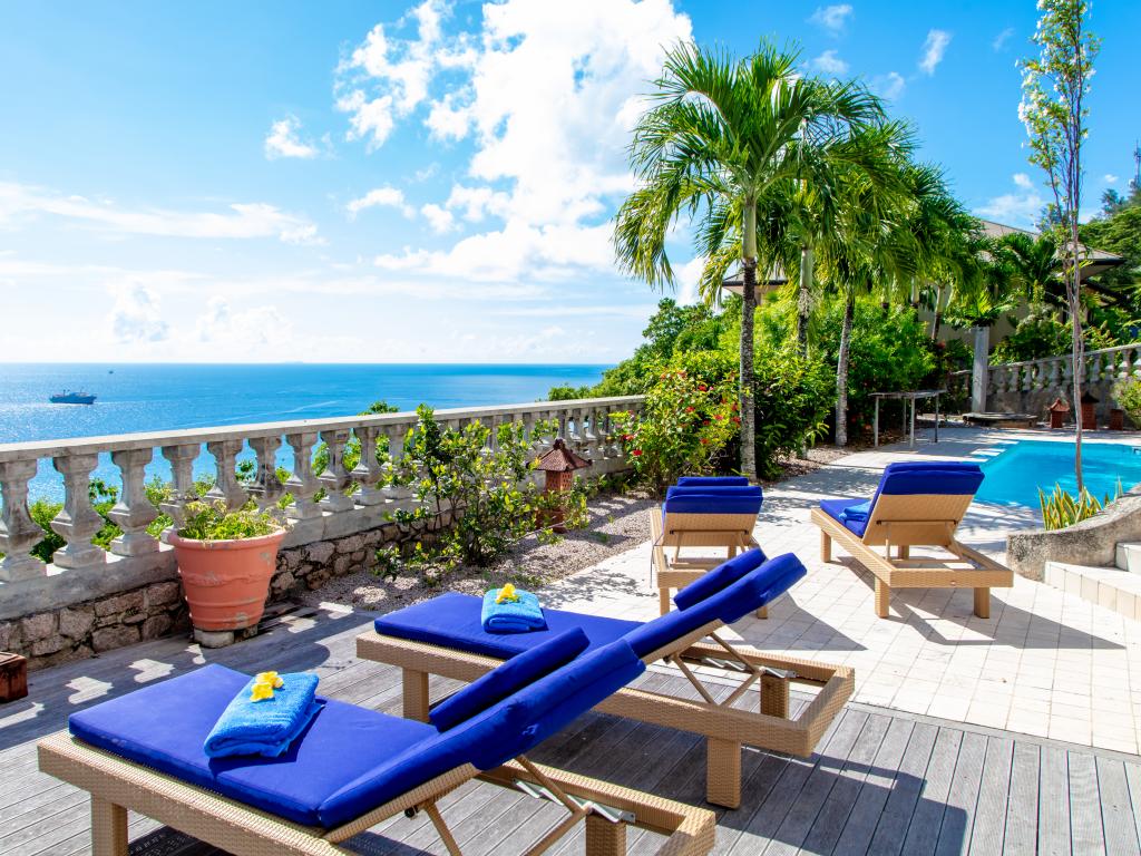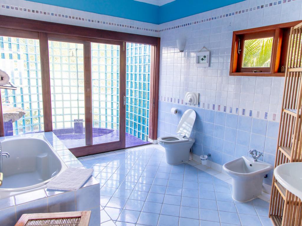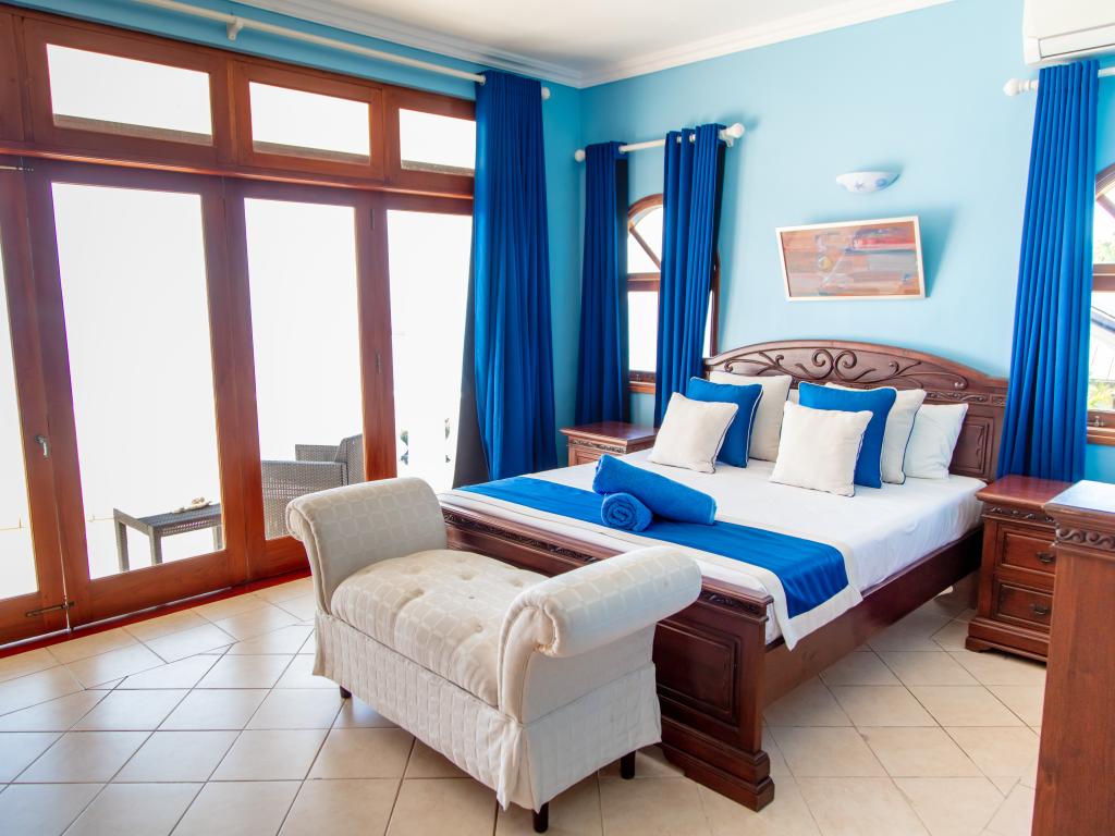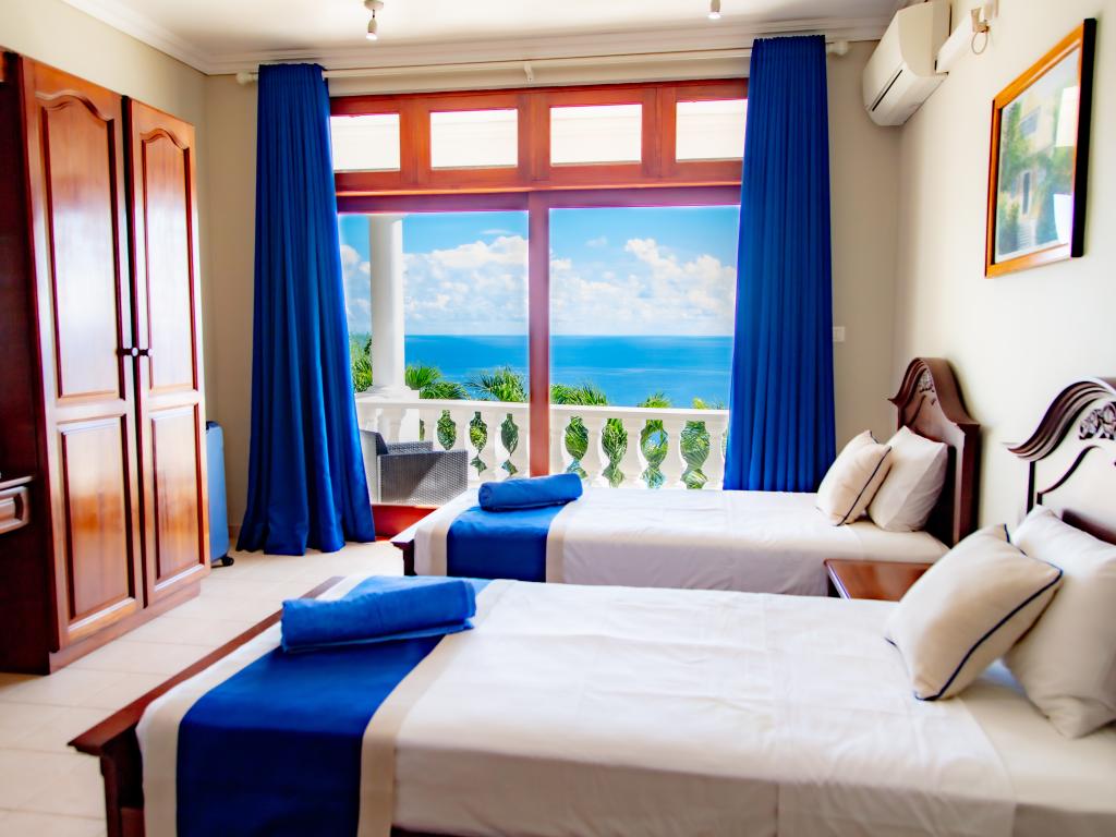 The elegant Blu Vista Villa is located overlooking Carana Beach on Mahé. From here, you can enjoy a magnificent panoramic view of the sea and the neighbouring islands of Praslin and La Digue. The villa finds itself on a spacious, very well-maintained property with a pool and is surrounded by peace and quiet. The beaches of Carana and North East Point are within walking distance whilst the beach of Beau Vallon and the city centre of Victoria are approx. 9km away.