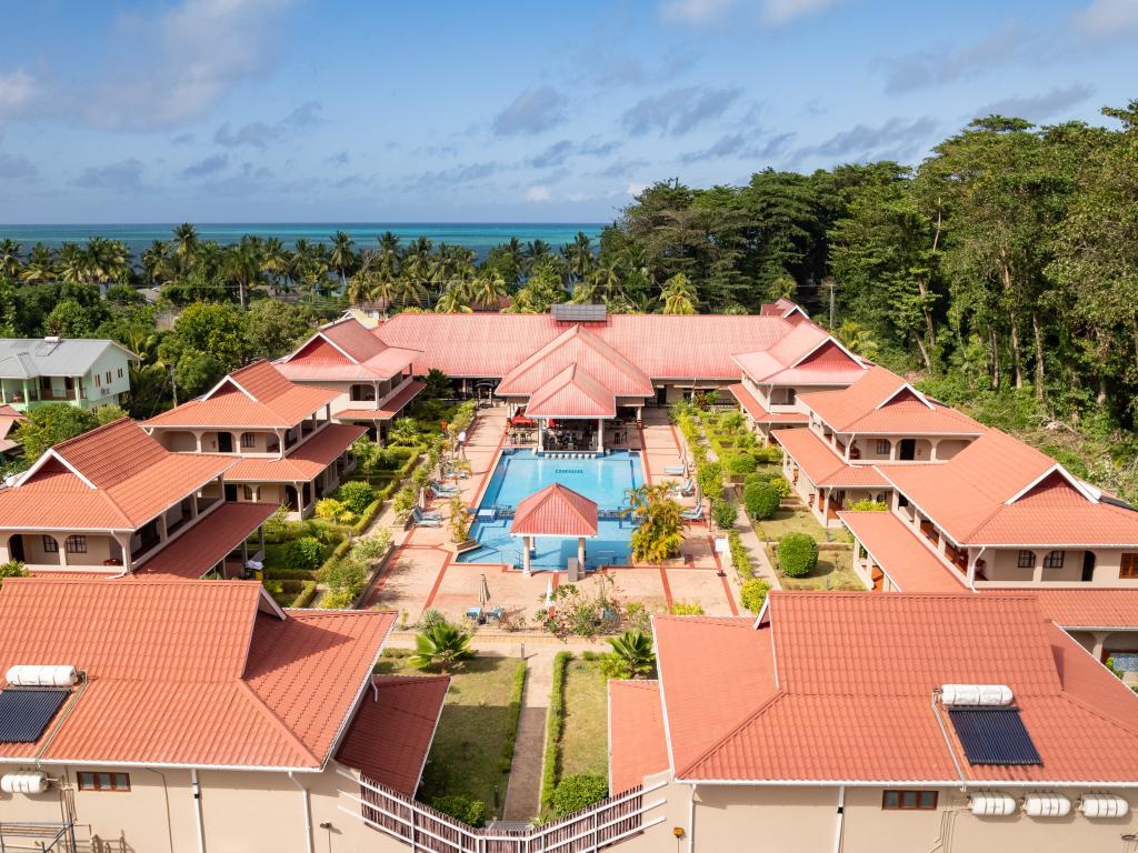 An excellent, modern, pristine, and clean hotel with a welcoming, family atmosphere. The manager is fully on top of things and is always present, checking in with all guests in the restaurant each evening to see if they are satisfied. All the staff are friendly and always smiling. We received an upgrade to a superior room and were able to check in early. All rooms are built around the pool and feature a terrace with pool views; the amenities leave nothing to be desired. The restaurant offers excellent cuisine at fair prices. Grand Anse beach is accessible via the road. It's not the most beautiful (lots of seaweed on the shore and in the water), so a rental car is recommended to easily reach the island's most beautiful beaches. There's also a bus stop nearby.