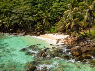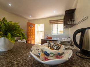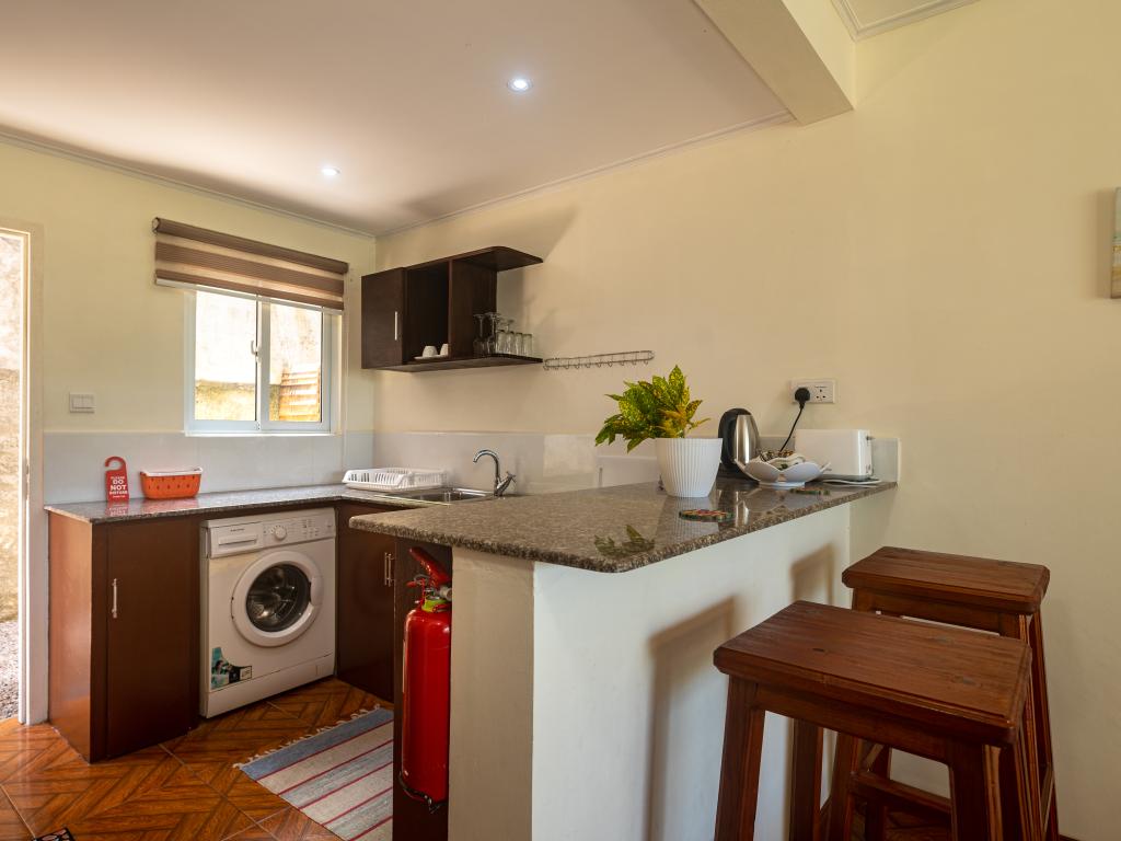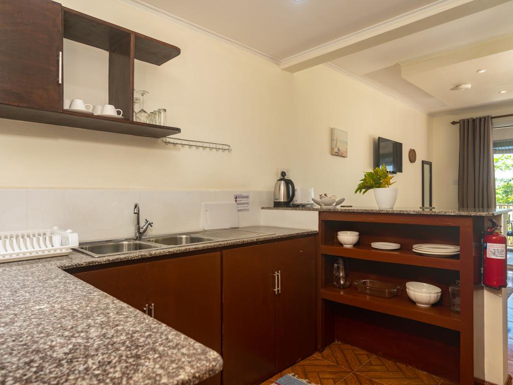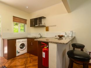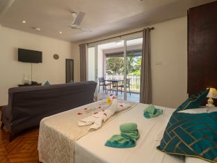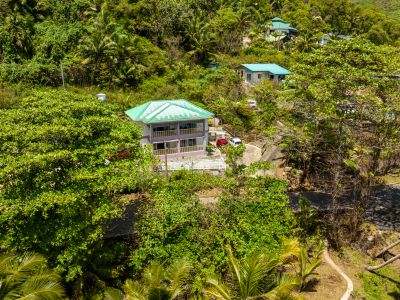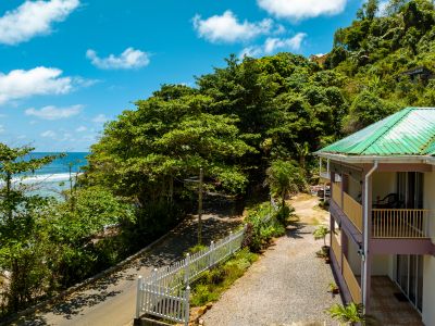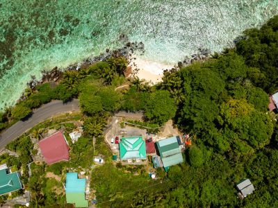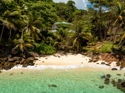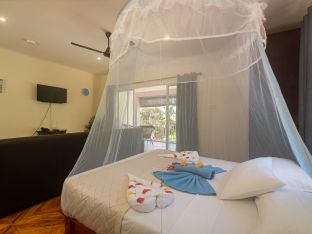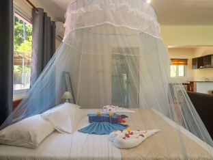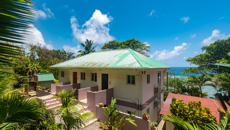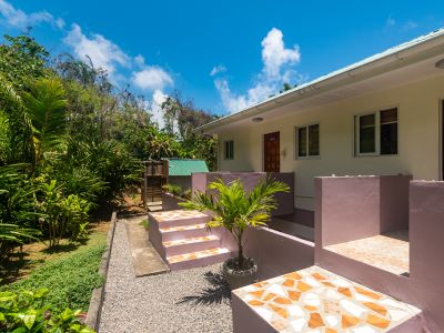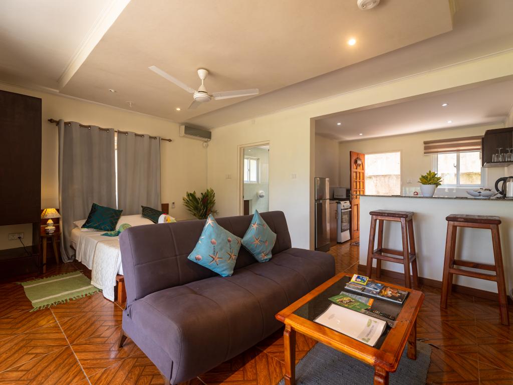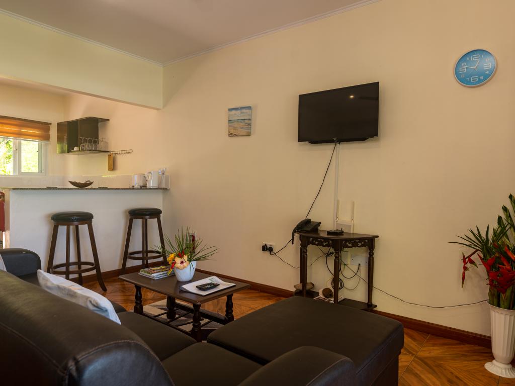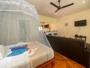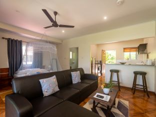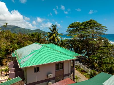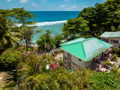 Will's Apartments await, located directly on the small beach of Anse Bougainville, on Mahé. From your accommodation you can enjoy a fantastic view of the ocean, as it’s quite literally at your feet. The beaches of Anse Parnel (approx. 400m away) and Anse Forbans (approx. 2km away) extend south of the accommodation. The great surrounding infrastructure offers restaurants and small shops within walking distance.