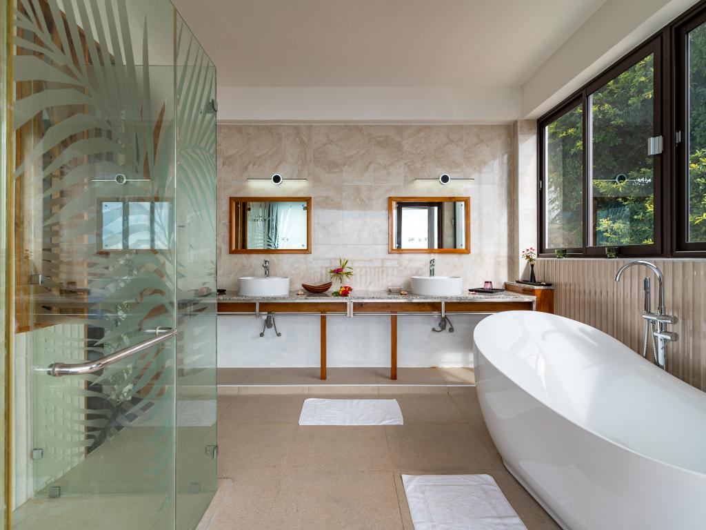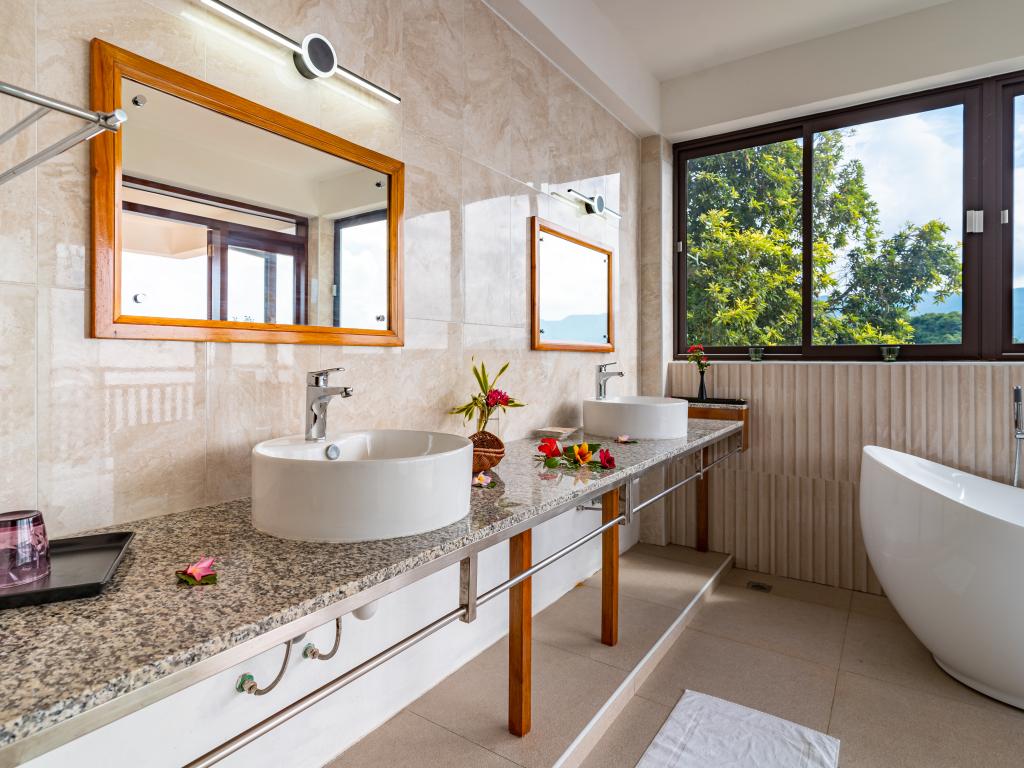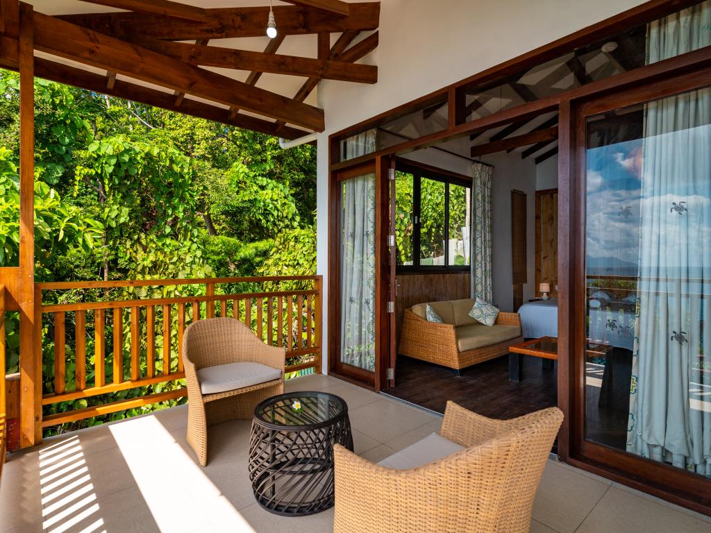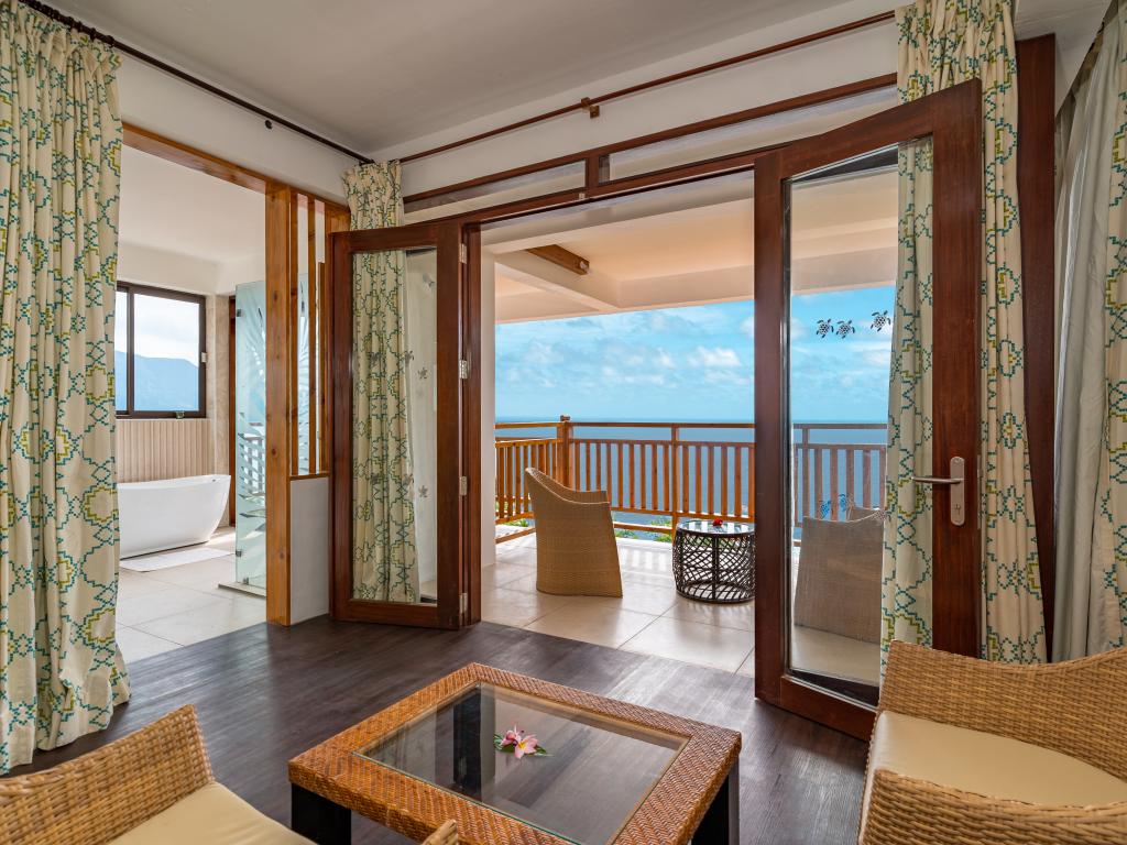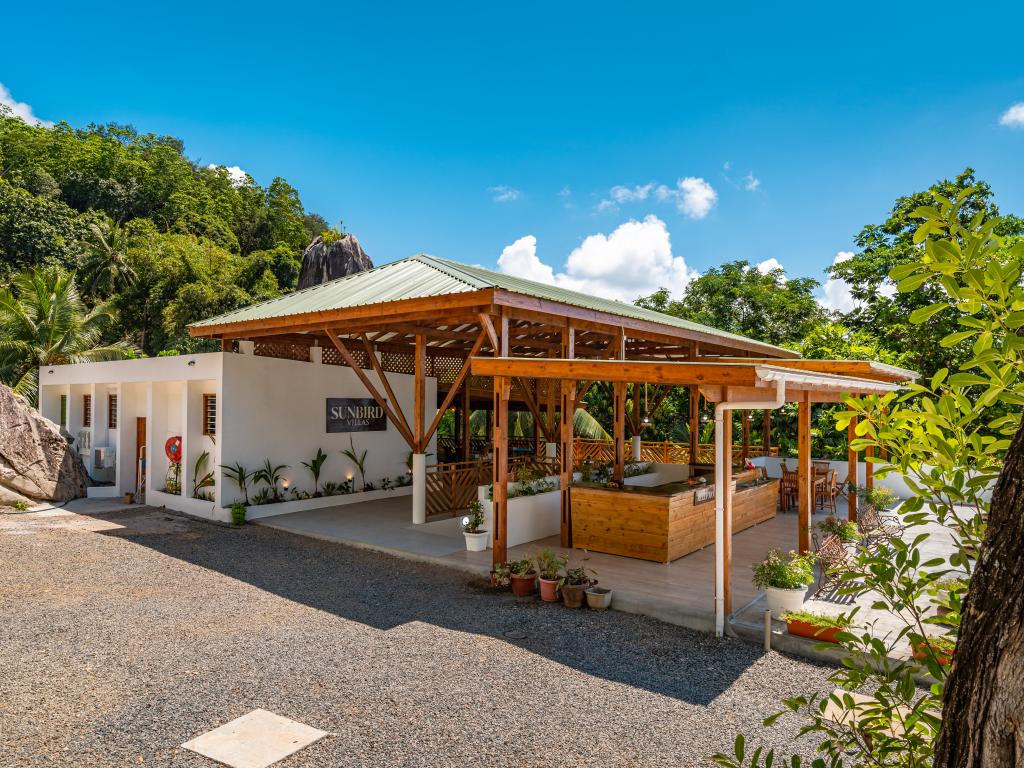 Thanks to its marvellous hillside location, the small but exquisite Sunbird Villas hotel offers its guests great views of the bay of Beau Vallon and Silhouette Island. The modern hotel, surrounded by a lovingly landscaped garden and with its own restaurant, is located in Glacis in the north-west of Mahé, just 600 metres from the pretty Sunset Beach and only 5 km from the popular Beau Vallon Beach.