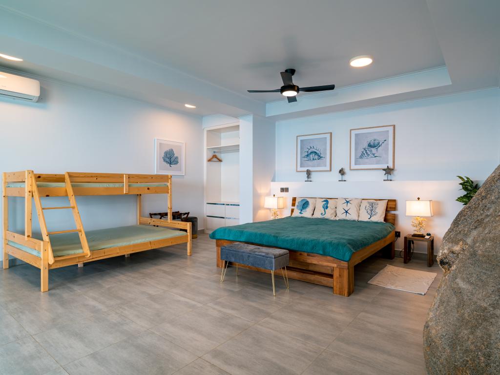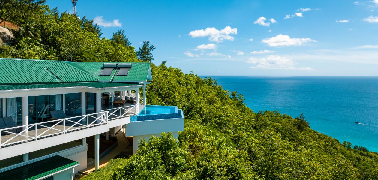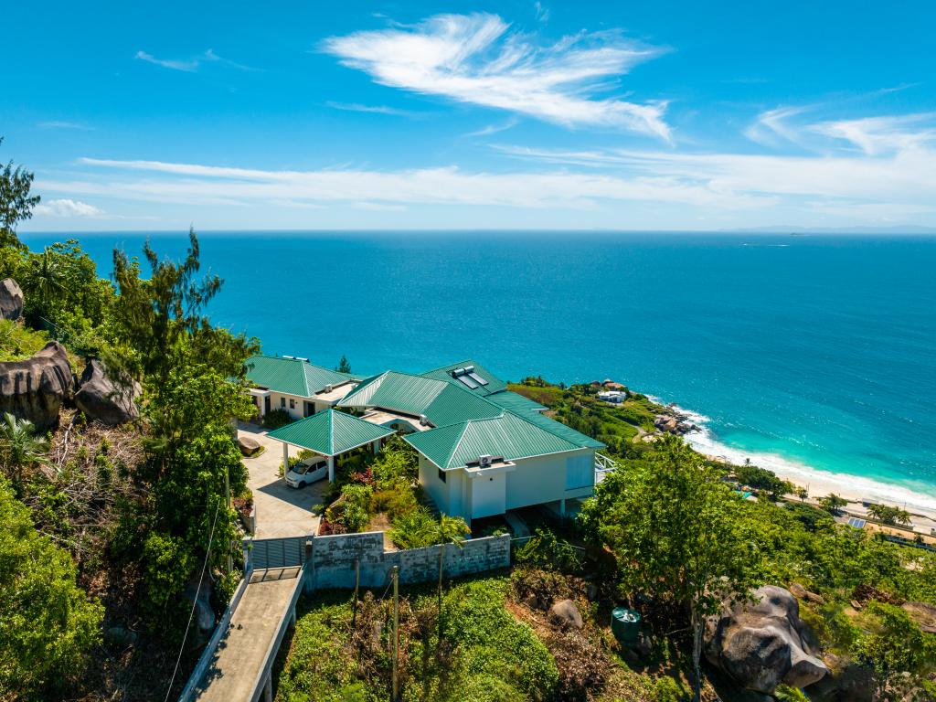 The Villa Club Tropicana Carana, built in 2023, is situated in an absolutely unique location and offers a sensational 220-degree view of the ocean, which stretches out directly in front of it. Here, you will find a secluded tropical retreat where you can enjoy the pure Seychelles island feeling in an aesthetically comfortable setting. Carana Beach and North East Point Beach are 1.5 and 2 km away, and shops are also nearby.
