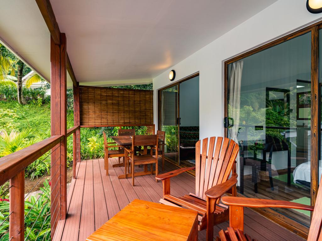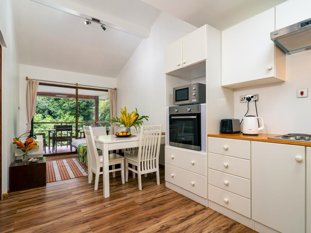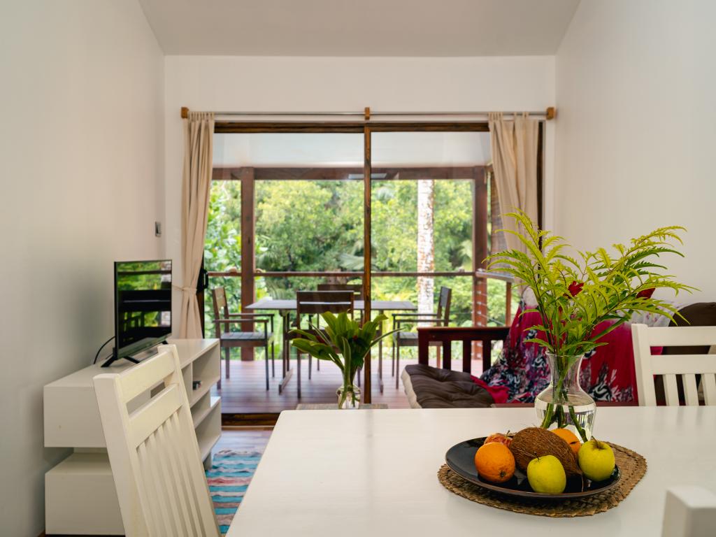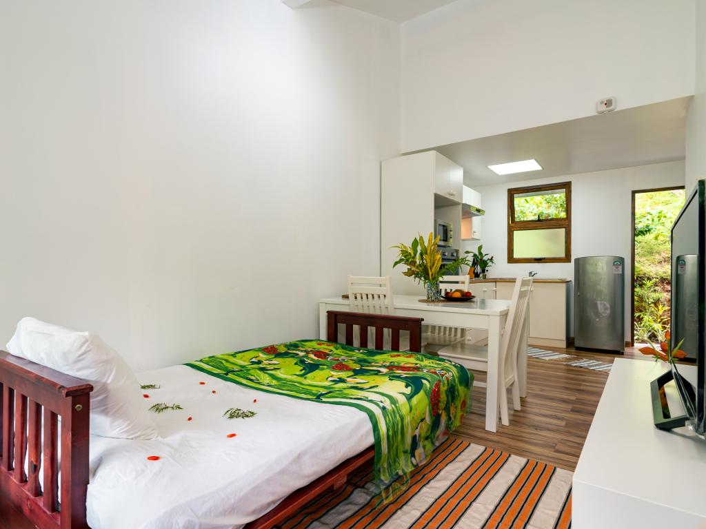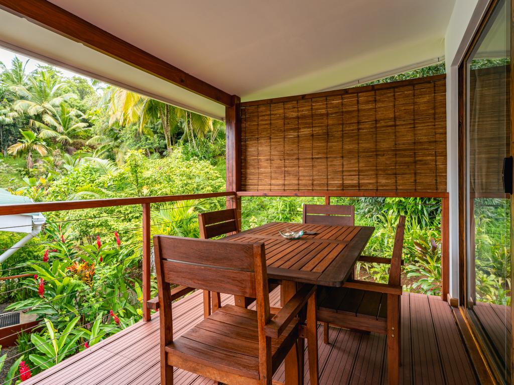 The Cashew Nut Grove Chalets in Port Glaud on Mahé have been carefully designed to blend harmoniously with the tropical forest surroundings. This comfortable self-catering accommodation offers a peaceful and eco-friendly retreat for your holiday. The lush green grounds also feature a beautiful saltwater pool. Restaurants, shopping facilities, and the beaches of Grande Anse and Port Launay are conveniently reachable within a few minutes by rental car.