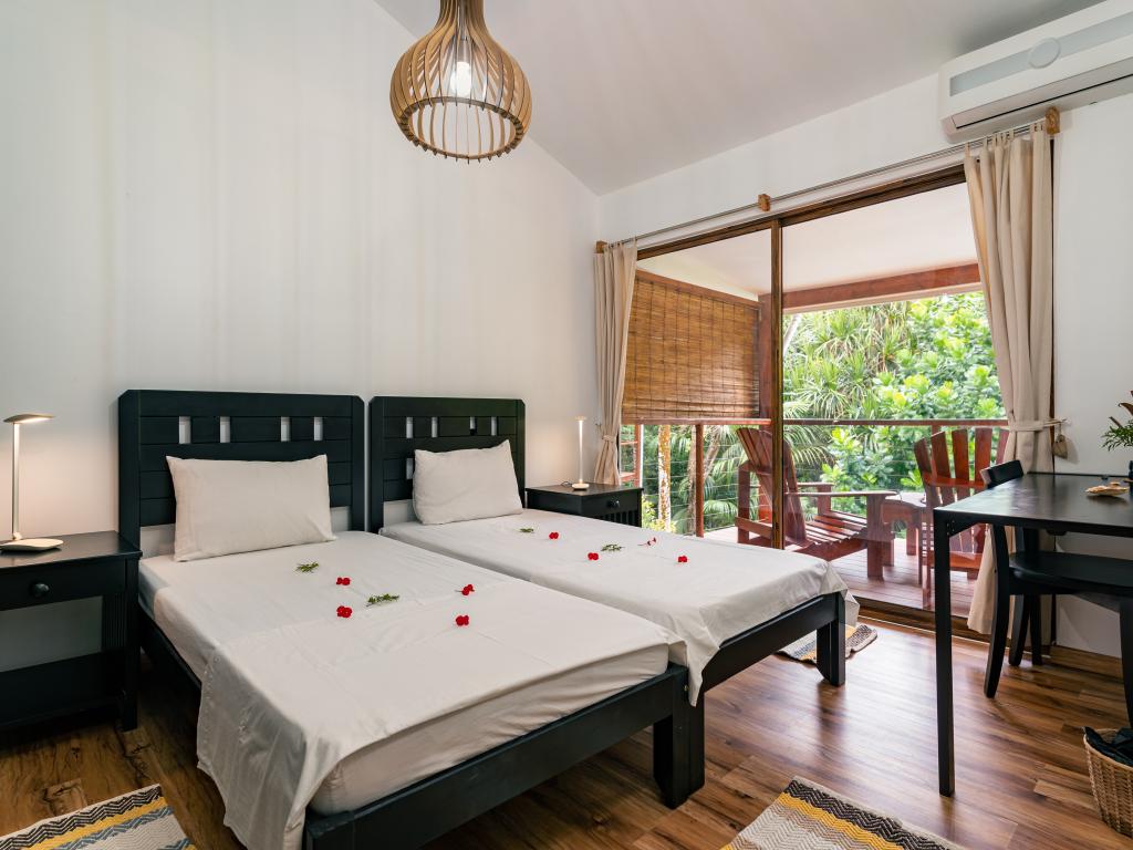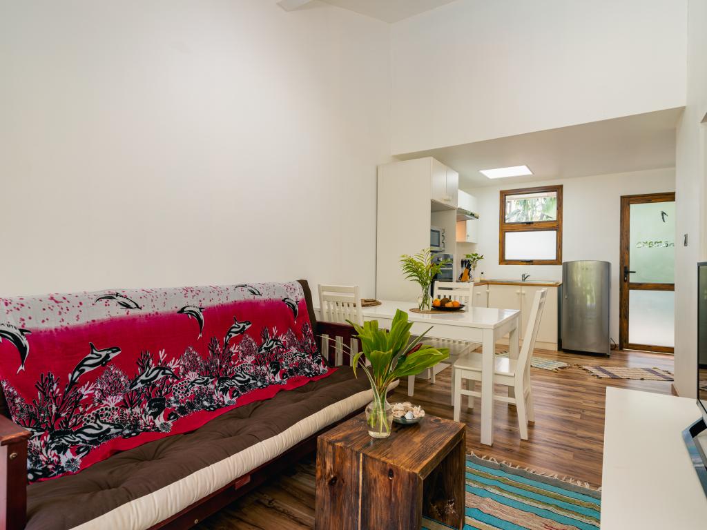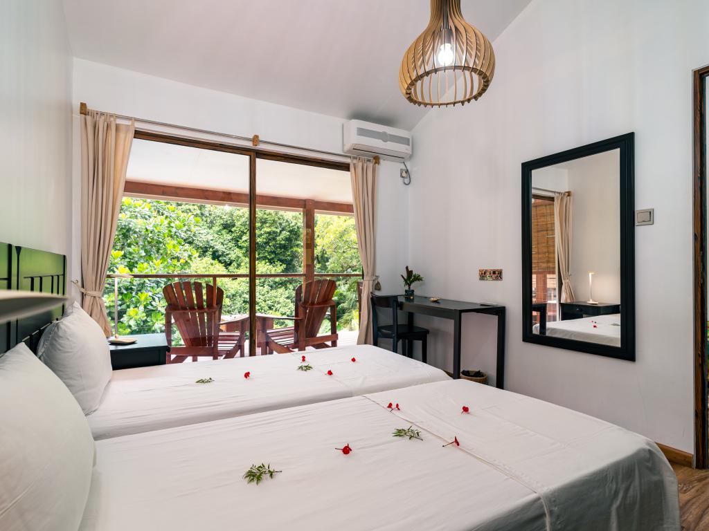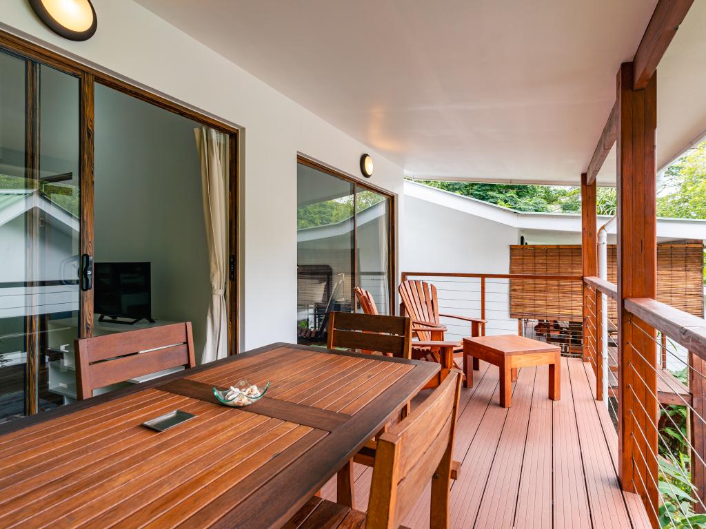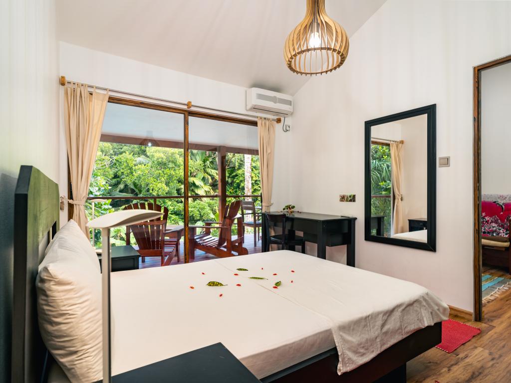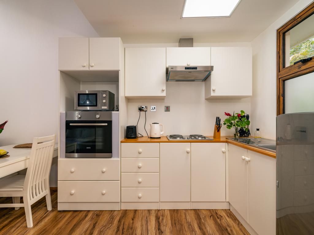 The Cashew Nut Grove Chalets in Port Glaud on Mahé have been carefully designed to blend harmoniously with the tropical forest surroundings. This comfortable self-catering accommodation offers a peaceful and eco-friendly retreat for your holiday. The lush green grounds also feature a beautiful saltwater pool. Restaurants, shopping facilities, and the beaches of Grande Anse and Port Launay are conveniently reachable within a few minutes by rental car.