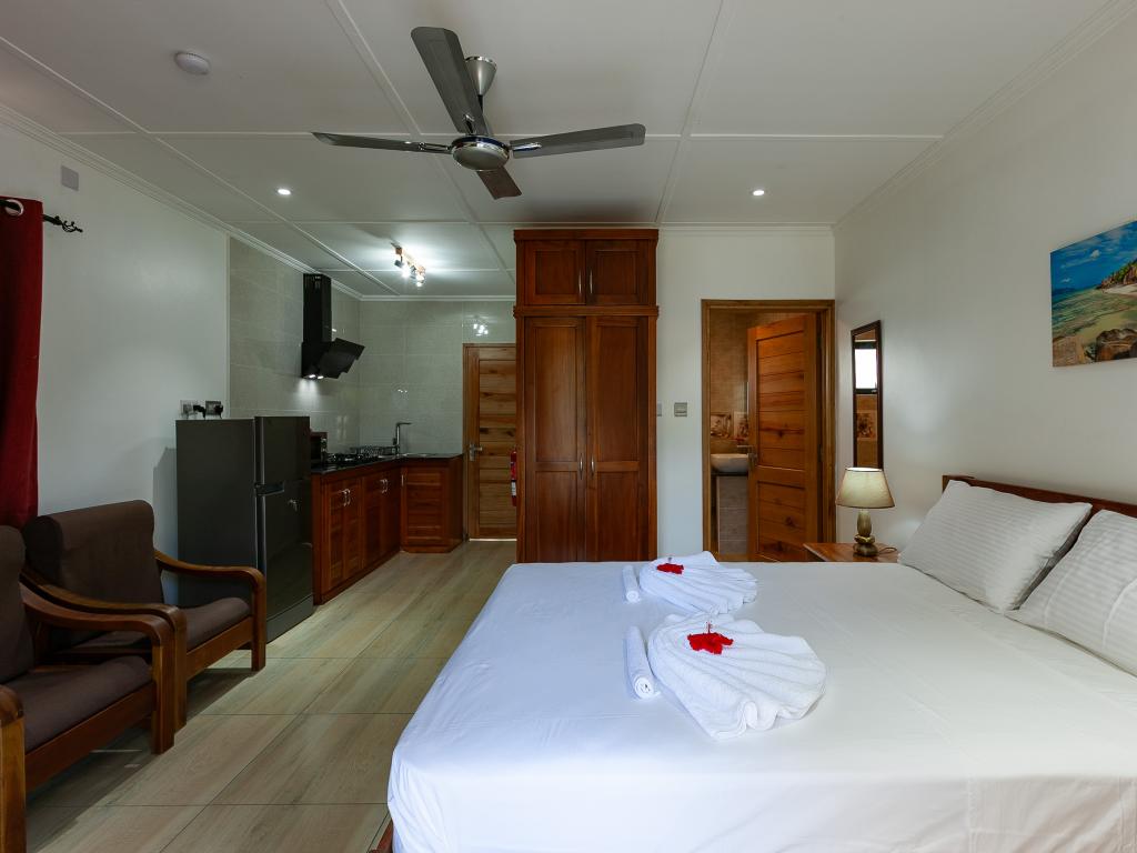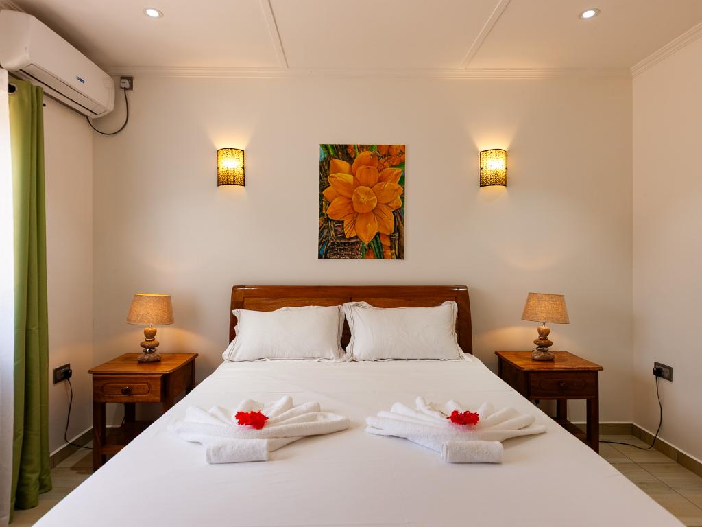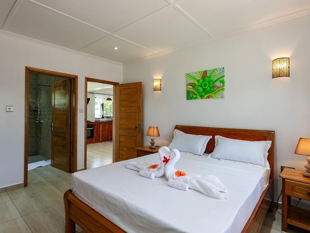 “Yvon's Tropical Villa” is just a few steps from the quiet Grand Anse beach, offering an idyllic setting amid tropical gardens with sea and mountain views. Shops, restaurants, and excursion spots are within walking distance – ideal for anyone looking for a relaxing yet convenient base on Praslin.