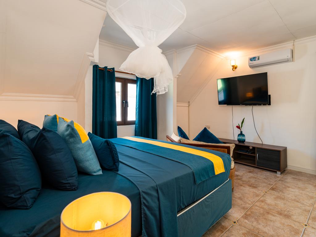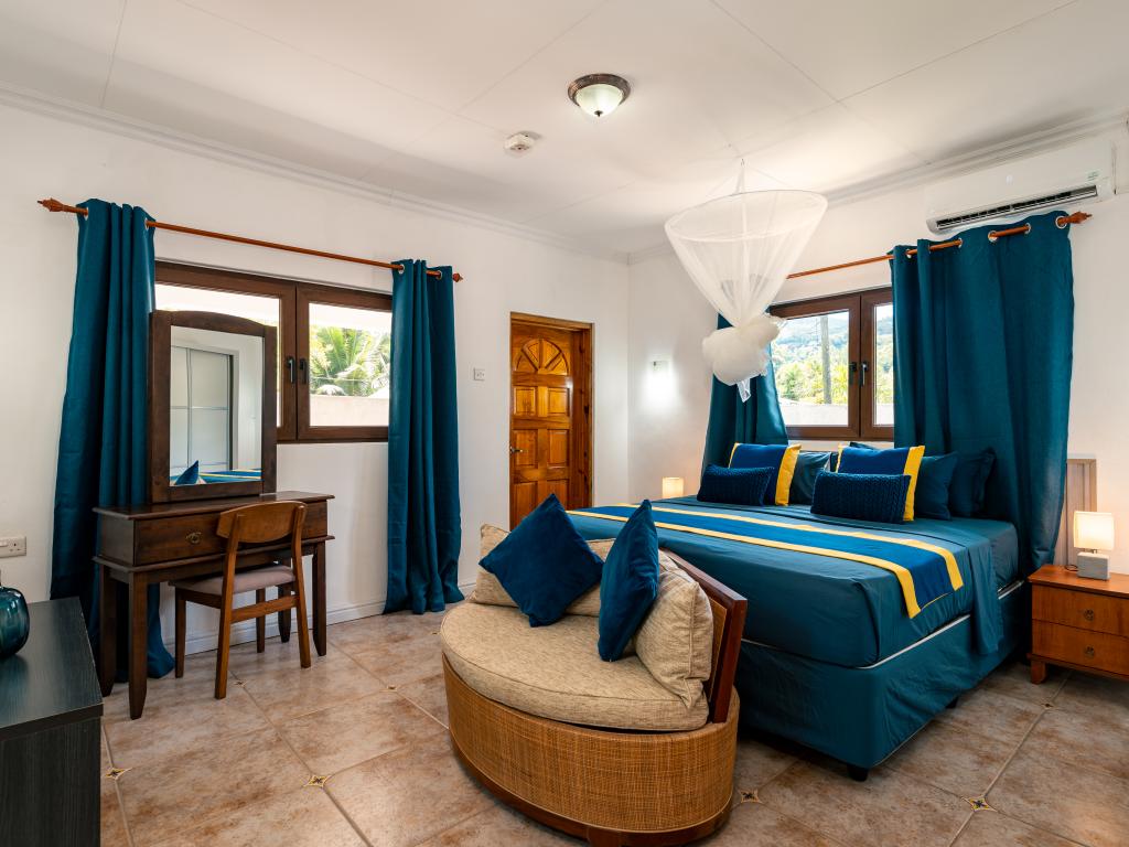 The charming beach retreat “Chello’s Villa” is set in a tropical garden directly on Anse Boileau beach and offers couples and families an idyllic hideaway. Takeaways, small shops, and watersports are within walking distance, while the tranquil bay invites guests to relaxing strolls and a genuine island atmosphere.