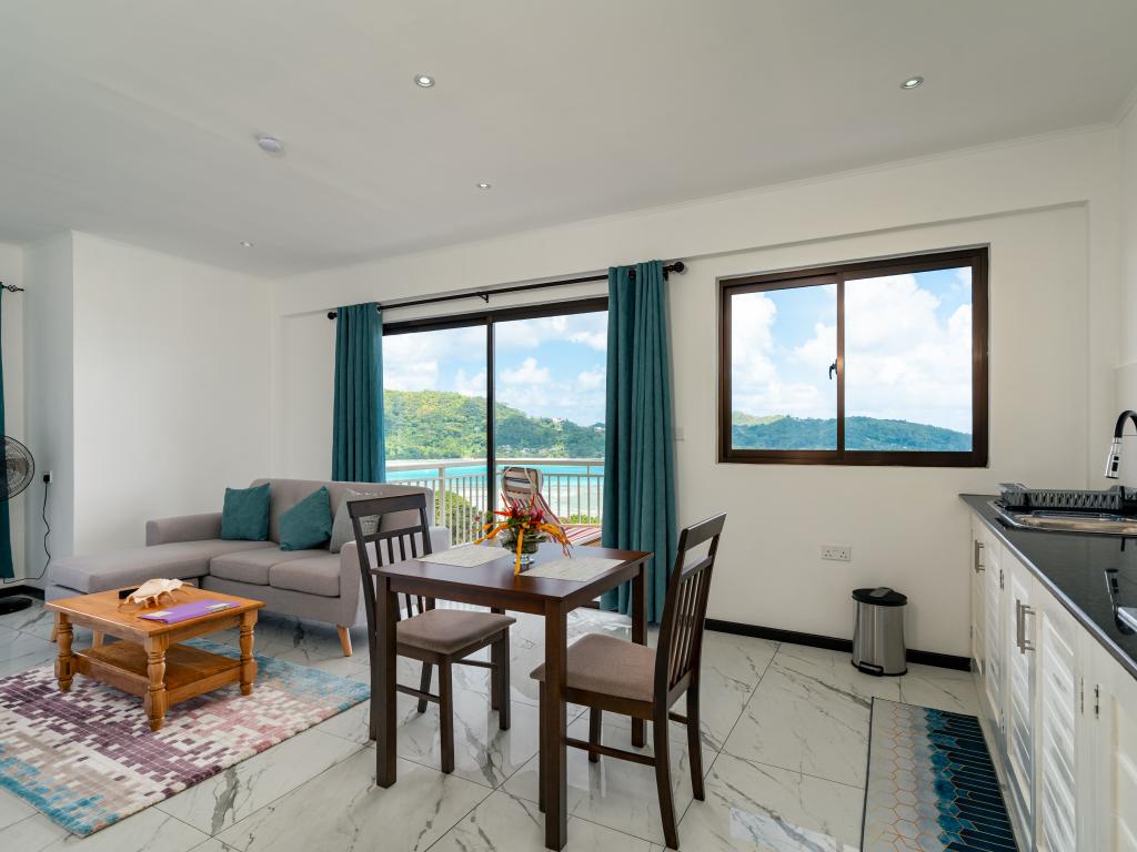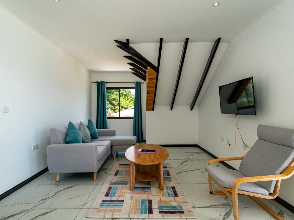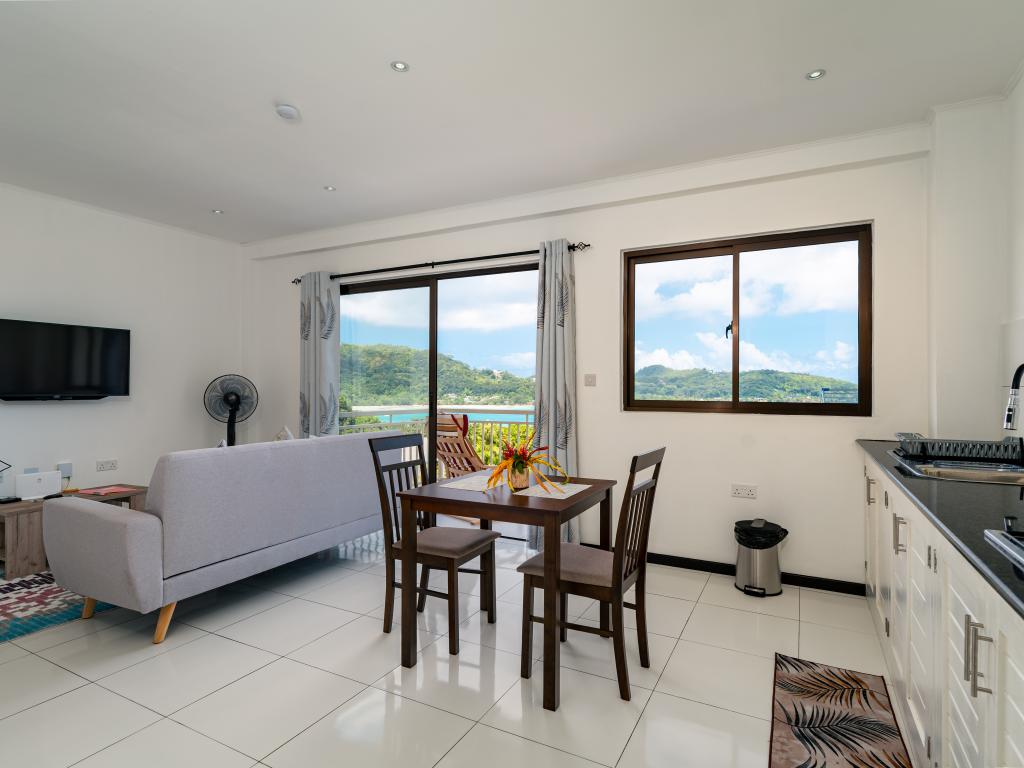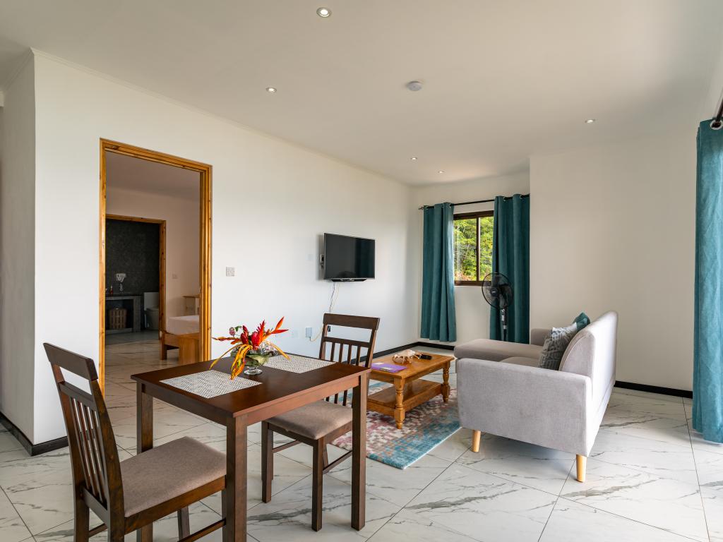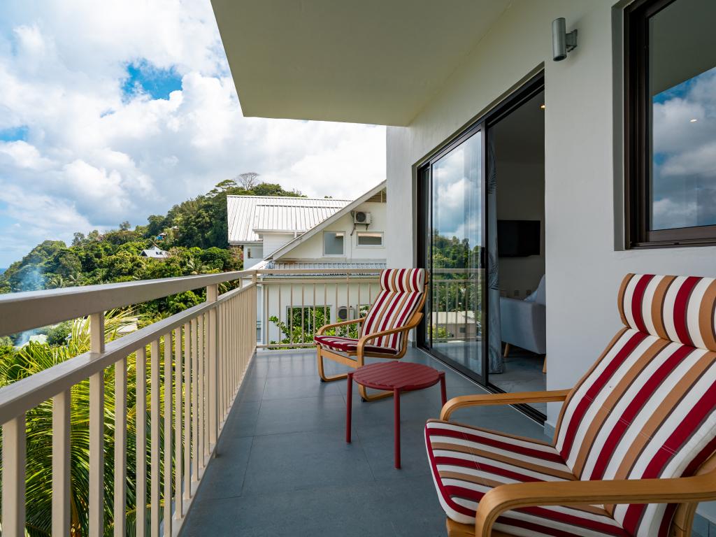 “Jolie View” is situated on a scenic hillside in the western part of Mahé and delights guests with its tropical surroundings and sweeping sea views. Just a few minutes away by car, you’ll find beaches, small restaurants, and shops – ideal for those seeking peace and nature while enjoying an independent holiday experience.