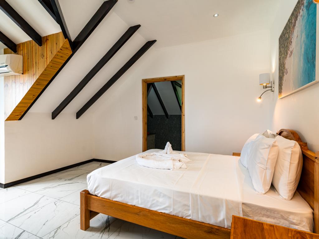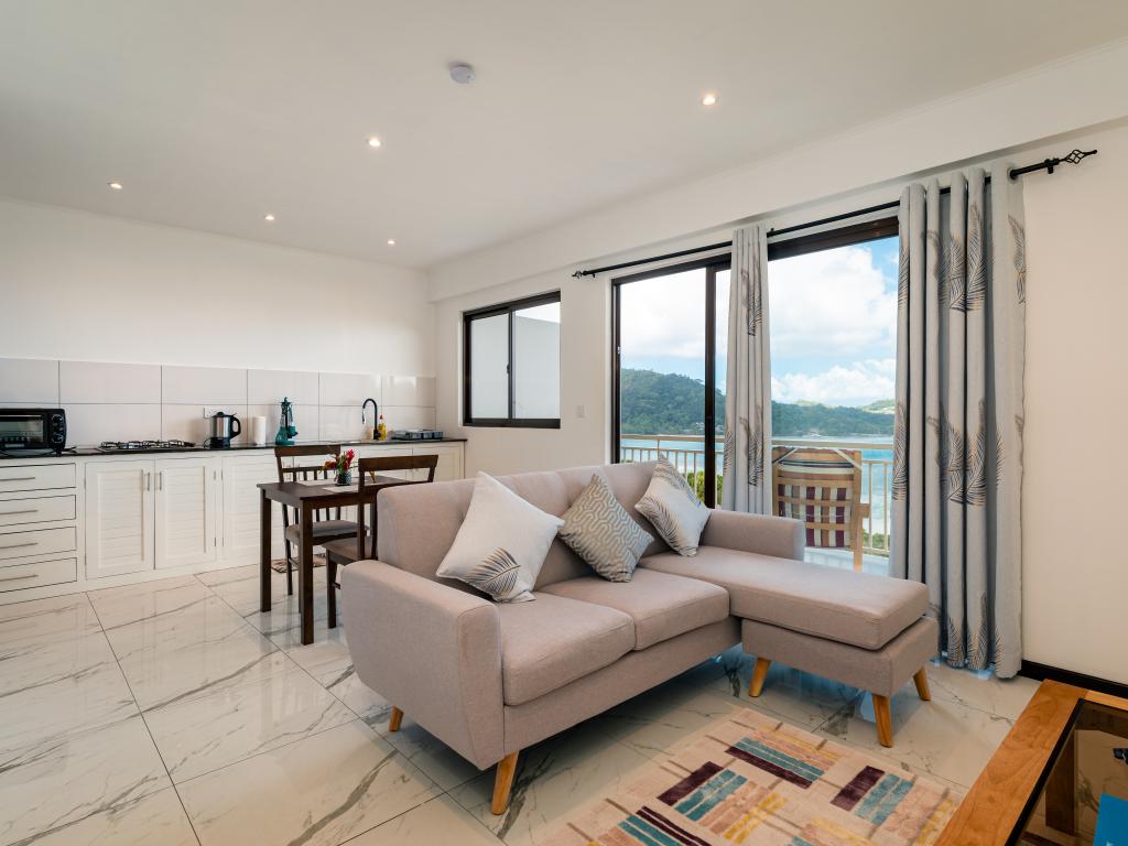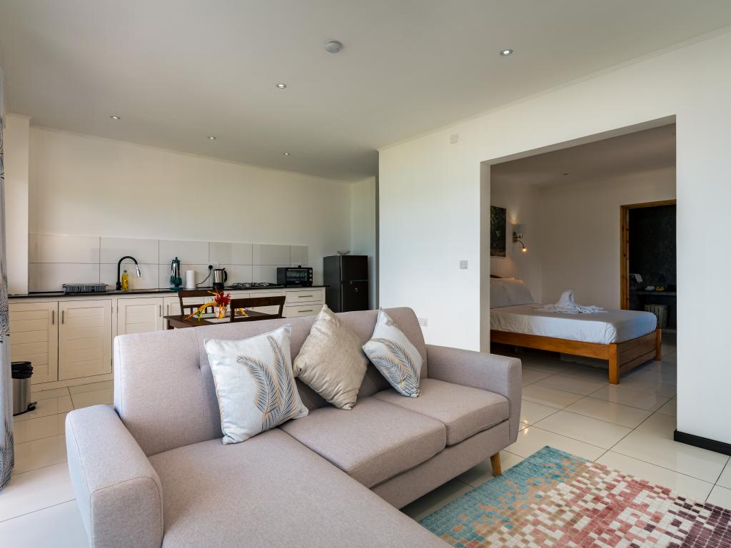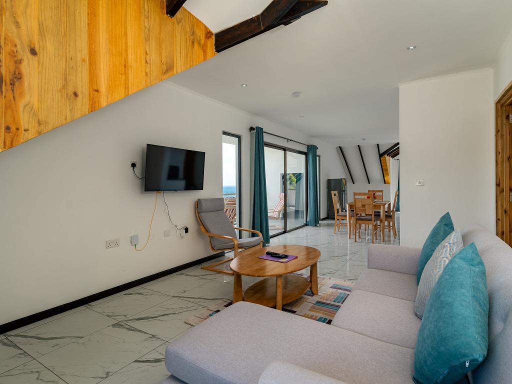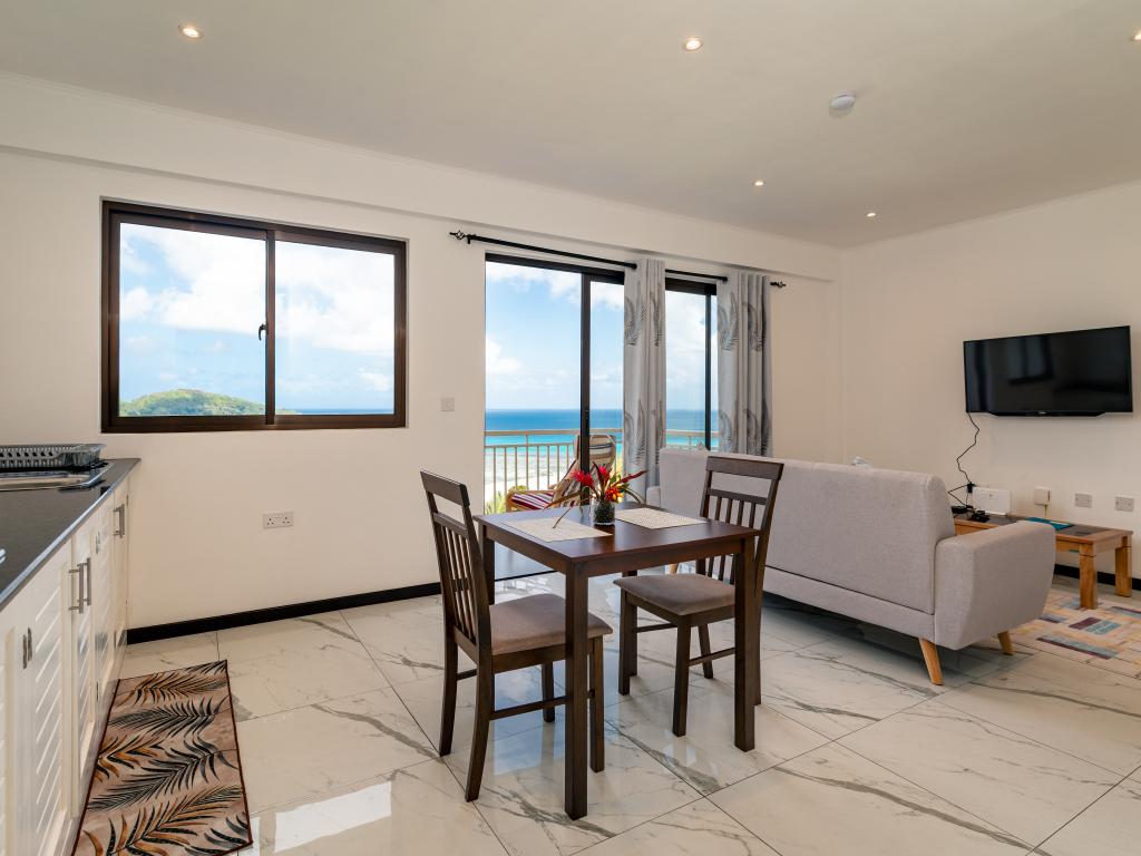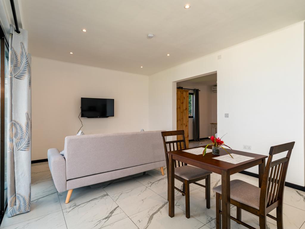 “Jolie View” is situated on a scenic hillside in the western part of Mahé and delights guests with its tropical surroundings and sweeping sea views. Just a few minutes away by car, you’ll find beaches, small restaurants, and shops – ideal for those seeking peace and nature while enjoying an independent holiday experience.