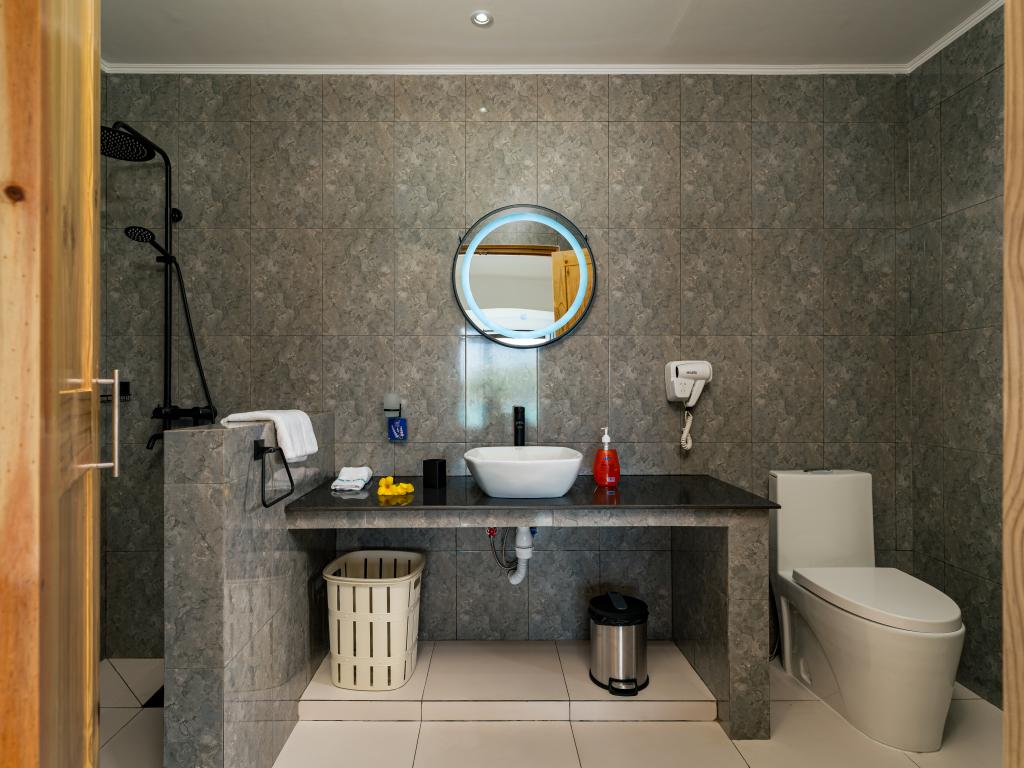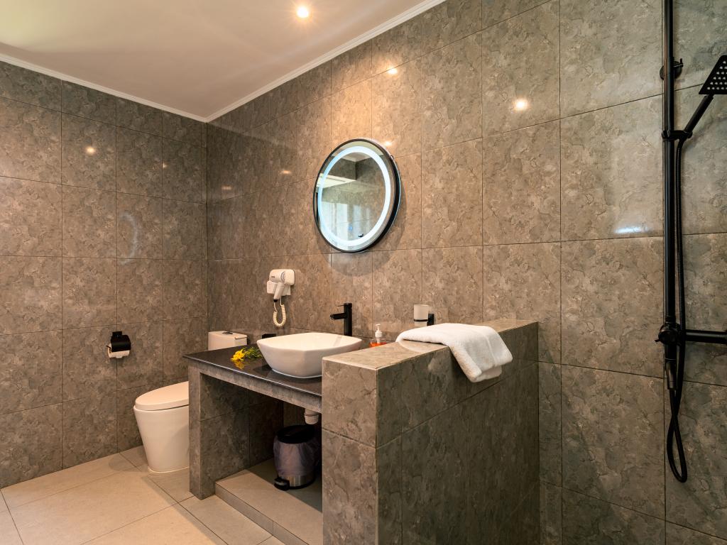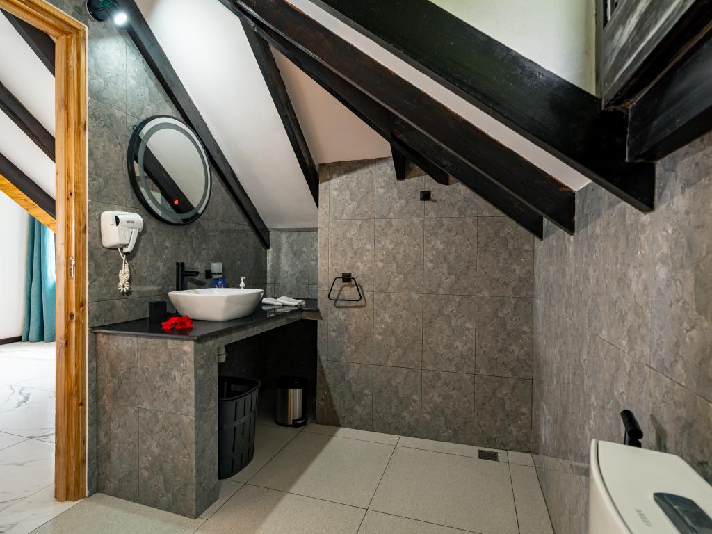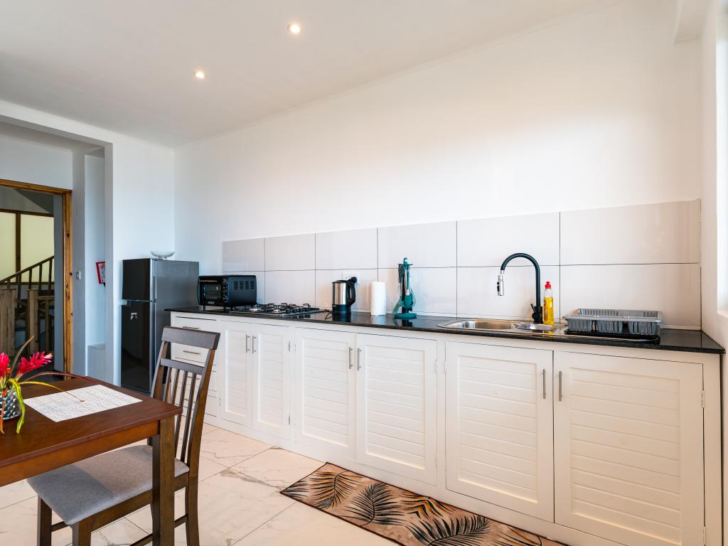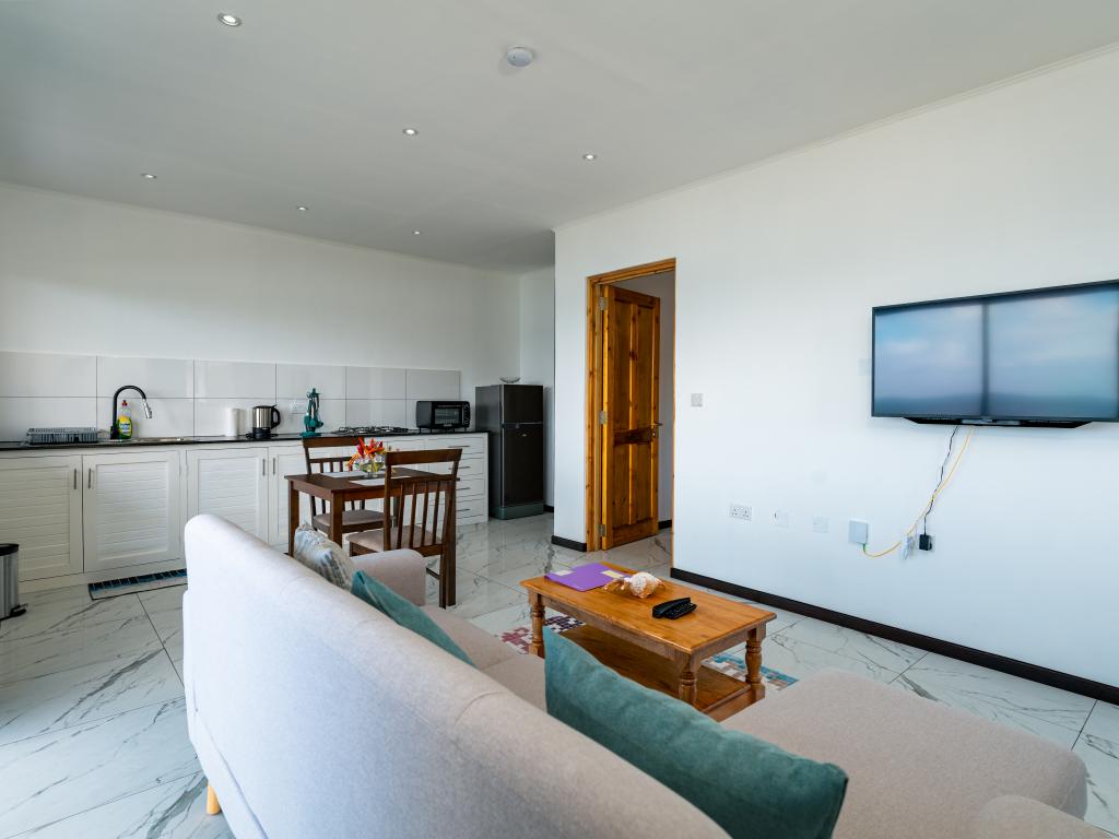 “Jolie View” is situated on a scenic hillside in the western part of Mahé and delights guests with its tropical surroundings and sweeping sea views. Just a few minutes away by car, you’ll find beaches, small restaurants, and shops – ideal for those seeking peace and nature while enjoying an independent holiday experience.