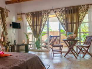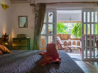 Translation (DE): GoogleTranslateNicole and Paolo are incredibly friendly and always available if needed. Nicole speaking French was a real plus for us, as our English isn't very good. Iyan, who was in charge of breakfast and cleaning, was very kind, and we enjoyed spending time with him every morning at breakfast. We would have appreciated some homemade jams and a wider variety of fruit, but otherwise, breakfast was complete and perfect. The guest house is ideally located. The beach is just 30 meters away, and there are shops and restaurants nearby. We will definitely be back next time.