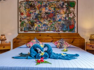 Translation (FR): GoogleTranslateThis review is our personal impression. The apartment we were given was really dated (80s Ruhrpott baroque) and we didn't like it. Only a balcony, no terrace, and only a very limited sea view. Much too big for us (2 people) (2 bedrooms, living room, large kitchen, small bathroom). Breakfast is prepared in the apartment kitchen. The cleanliness was also not as good as in the other two accommodations on Praslin and La Digue. Since April 2025, there has been no German owner, which was also a major criterion for us when booking. The new owner is very nice, I think she's English? Everything is within walking distance, but we wouldn't stay in this apartment again.