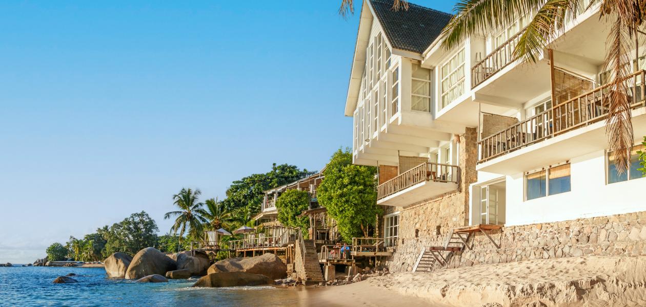 Bliss Hotel in the north of Mahé ranks among the most beautiful accommodations on the Seychelles’ main island, offering a great deal of ambience, style, and island flair. Whether you decide to book a seaside or hillside location, the hotel’s breathtaking beach and mountain panorama will be open to you. The surrounding area contains shops within walking distance, and the beach of Beau Vallon is just a few minutes away as well.