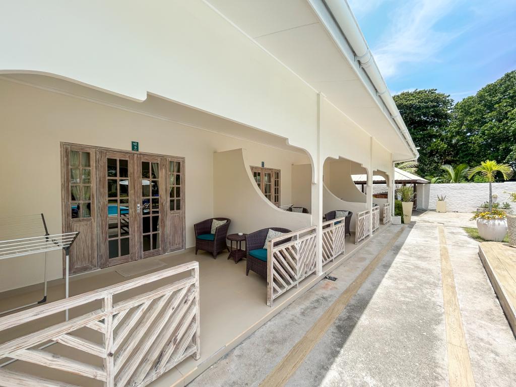 Translation (DE): GoogleTranslateSmall accommodation, but more than adequate for its location, value for money, and friendly, always helpful staff. Breakfast isn't up to par with the property. For dining, you'll need to rely on the restaurants in the center of Grande Anse.