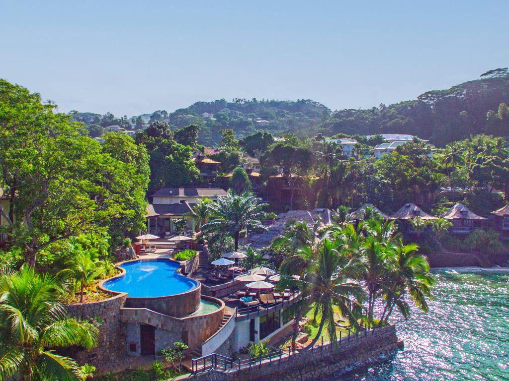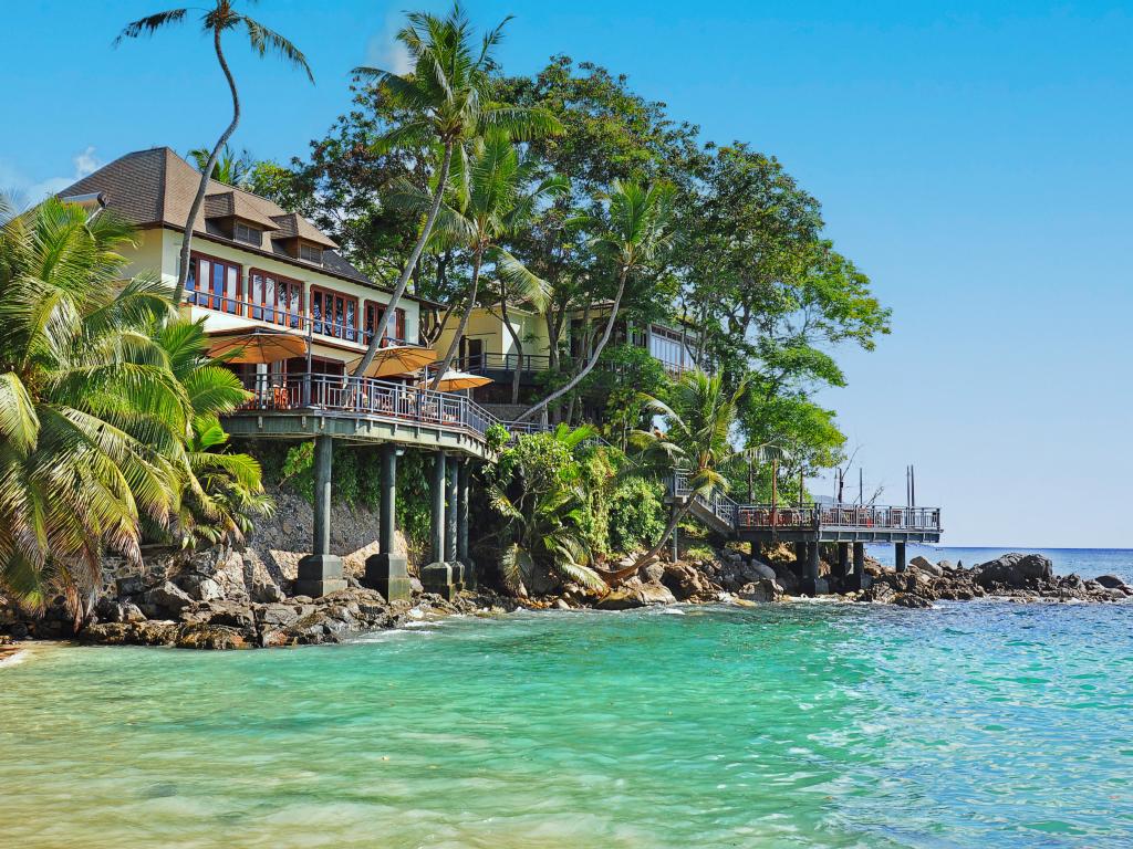 One of the most charming hotels in the Seychelles is located in the north of Mahé. The Hilton Seychelles Northolme Resort and Spa offers guests breathtaking views of some of the other Seychelles islands, as well as beautiful Creole-style architecture, a spa, a fitness centre, an infinity pool, and much more.