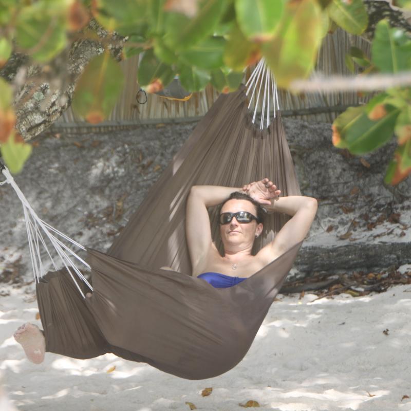 • Am besten eine dünne Plastik-Hängematte mitnehmen - fast an jedem Strand gibt’s Palmen und Bäume, die sich gut zum Aufhängen eignen.