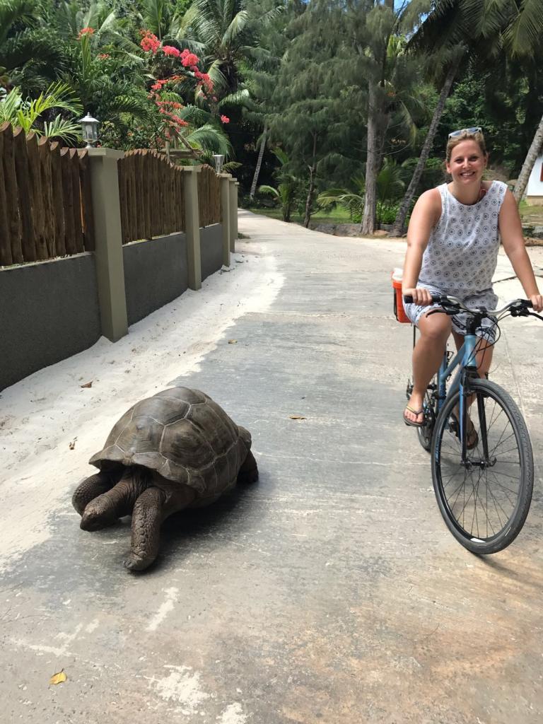 Auf Schildkröten trifft man auf La Digue jedoch nicht zur im Wasser sondern auch auf Landwegen – einfach spektakulär!