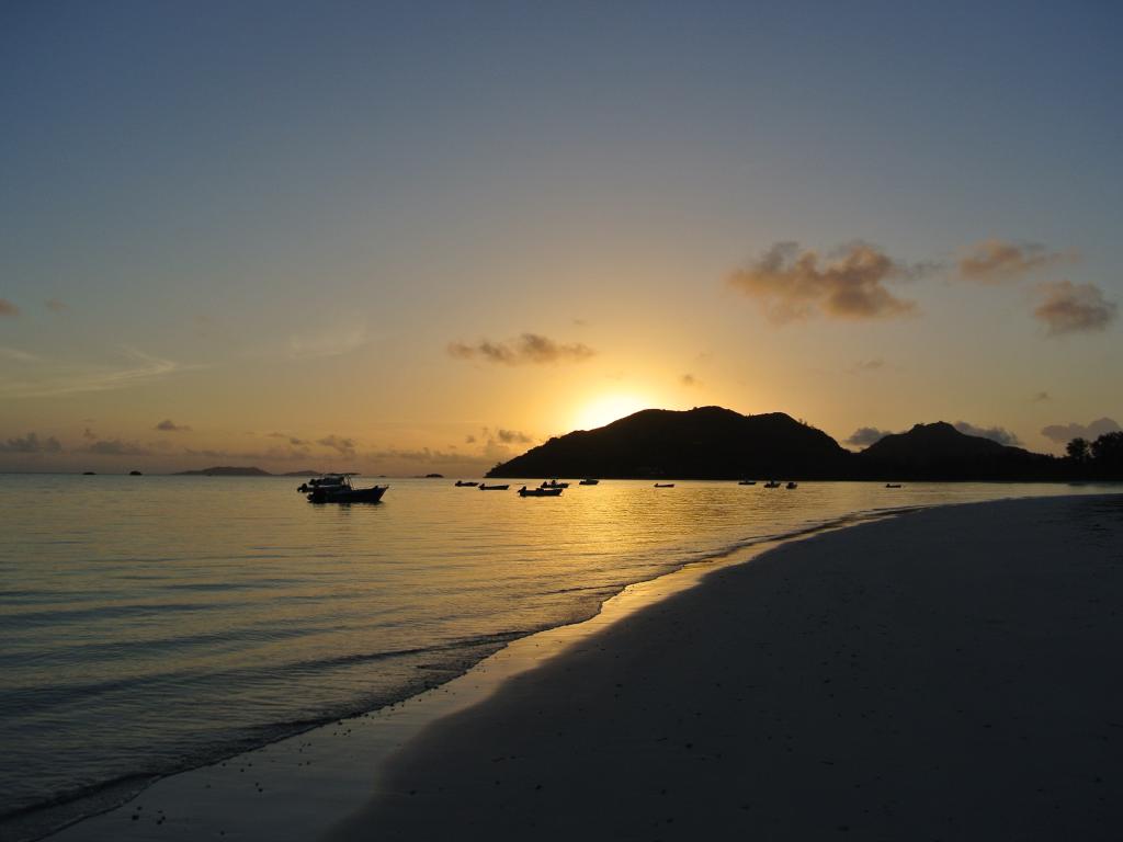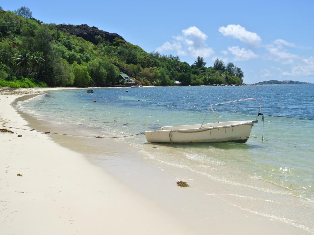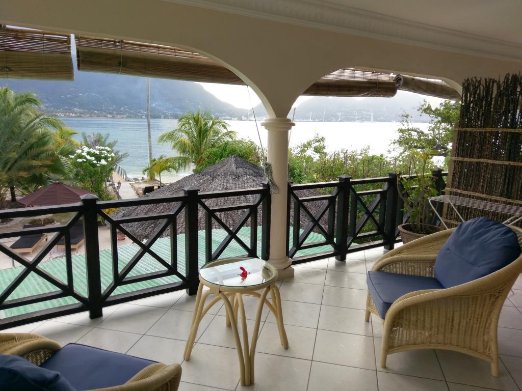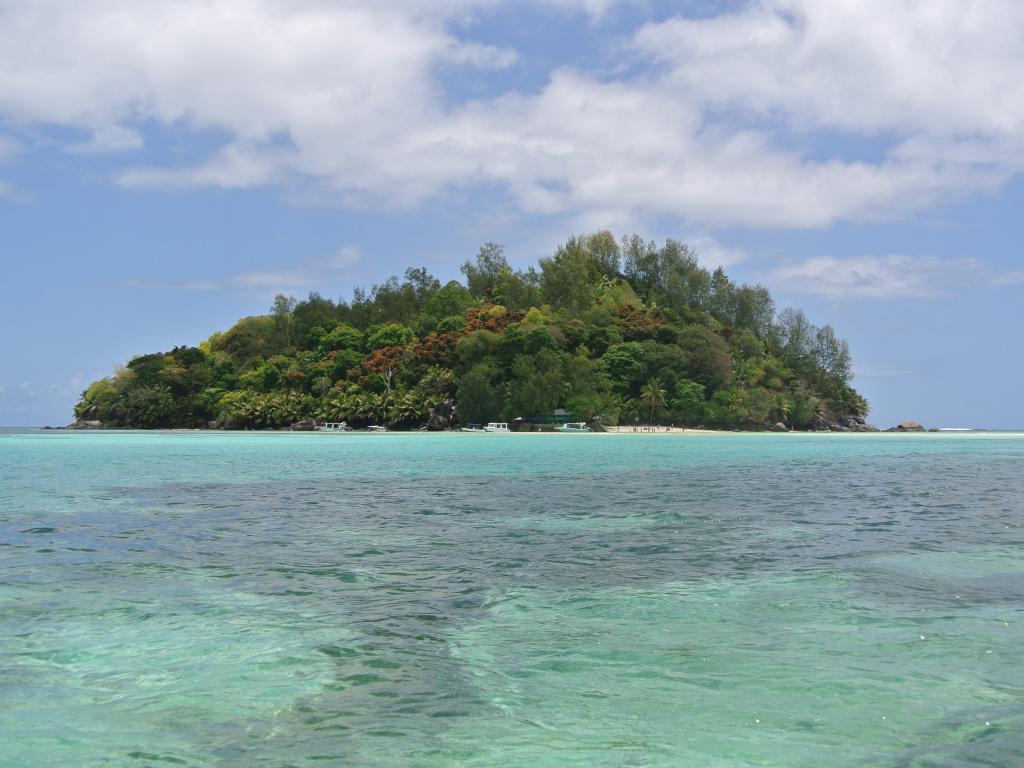 Als letztes Reiseziel haben wir uns die kleine Insel Cerf ausgesucht. Wenn man Ruhe und Einsamkeit sucht, ist ein Strandtag auf Cerf kaum zu übertreffen. Straßen gibt es hier nicht, nur einen kleinen Trampelpfad durch den Dschungel an die andere Inselseite und natürlich die Anlegestellen der Boote. Das Zimmer in unserer Unterkunft Villa de Cerf war von allen bisher beschriebenen mit Abstand das schönste. Besonders hat uns der Balkon mit tollem Ausblick auf Mahé gefallen, auf dem wir gerne den Abend mit einem Glas Champagner haben ausklingen lassen, den wir als Honeymoon-Geschenk bekommen haben.