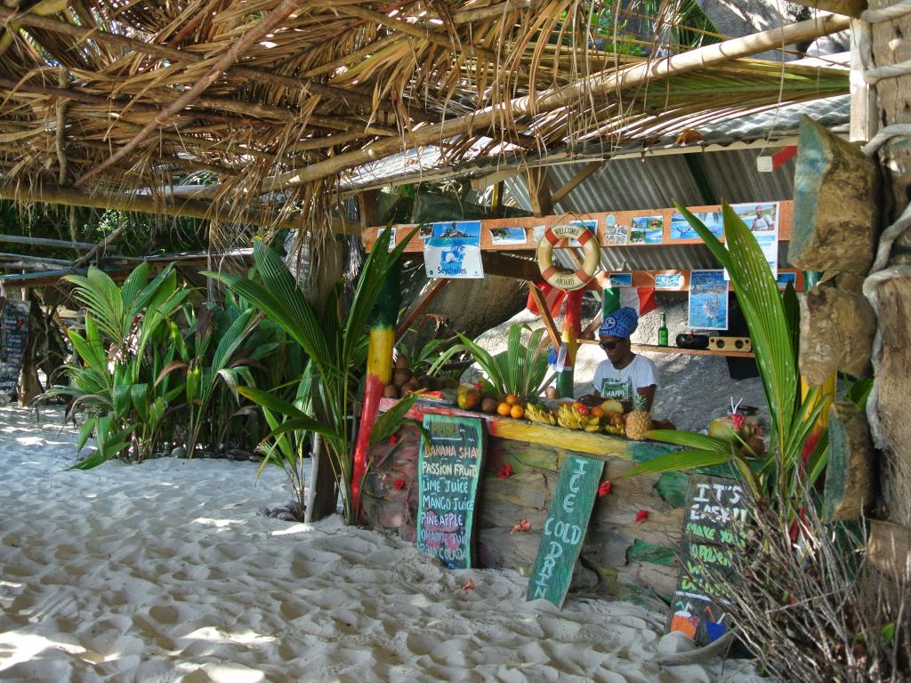 Genauso nahe wie der Strand war auch der Geldautomat und der Supermarkt, wo wir uns mit Nahrungsmitteln für Frühstück und Mittagessen versorgen konnten. Abends sind wir immer essen gegangen, wobei wir das Lokal „Le Laurier“ wärmstens empfehlen können für alle, die ein wirklich ausgezeichnetes creolisches Buffet ausprobieren möchten. Die absoluten Highlights der Insel waren für uns zwei Ausflugsziele, die man mit dem Bus erreichen konnte: Einerseits der nördlich gelegene Traumstrand Anse Lazio, wo das Meer wirklich so blau strahlt wie sonst nur auf Werbeplakaten, und der Dschungelpark Vallée de Mai, wo wir eine Führung mit dem lustigen Guide „Royal Black“ gebucht haben. Er hat uns mit sehr viel Liebe zum Detail alles über die Coco de Mer und die einheimischen Tierarten erzählt und uns alle zwei Schritte etwas Neues zeigen können, wirklich großartig!