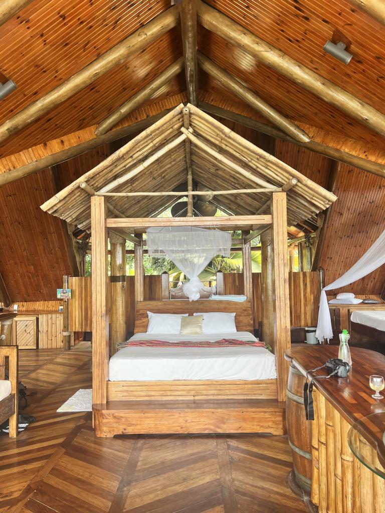 We had never stayed in a location like this before – a fresh wind going through the open room, no doors or windows but still extremely comfortable and we immediately felt we were in the right spot . Luckily the palm spiders had no interest into coming inside, so our only visitors were some Geckos and judging from the paw prints on our spare bed, we also had a cat staying over for the night.