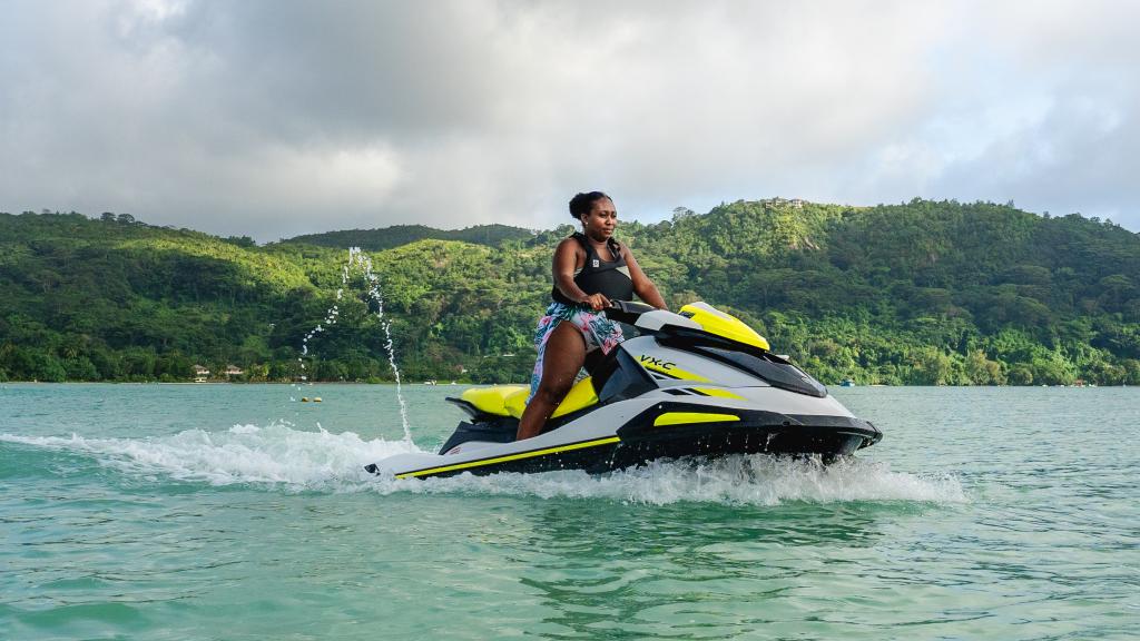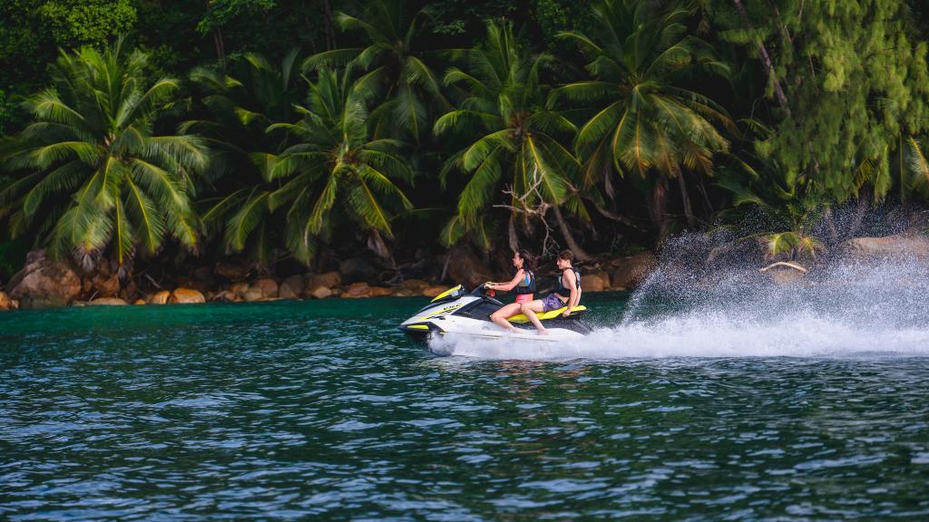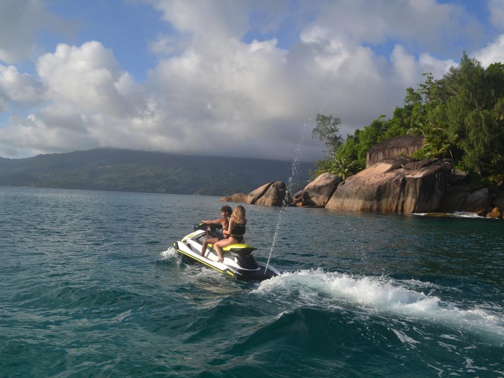 Experience the southwest coast of the Seychelles with a truly unique adrenaline rush. Begin your private jet ski excursion at the Banana Sea Club in Anse à la Mouche and discover some of the island’s most beautiful and secluded bays. These places are not accessible by car. On the exclusive "Southwest Coast Eco Jet-Ski Adventure", you’ll ride your own jet ski along the scenic coastline. The route takes you from Anse Louis past Anse Boileau, Anse Polite, Anse Cimetiere and Anse Barbarons all the way to Grand Anse. The small islands of Île aux Vaches and Île Thérèse are also part of the itinerary. Depending on the season, the tour follows different directions. From October to May, when the sea is calmer on the northwest coast, you head to Île Thérèse. Along the way, there are selected stops for snorkelling around the island. From June to September, the tour shifts to the southeast coast. Here you’ll discover the clear and sheltered waters of Baie Lazare and Petite Anse, with more snorkelling stops along the route. An experienced guide will accompany you on the water and ensure your safety. You ride at your own pace, with no pressure from a group. This experience perfectly combines adventure, freedom and a love of nature. The tour starts at your preferred time between 10 am and 5 pm and lasts around two hours. Afterwards, you’re warmly invited to unwind at the Banana Sea Club. Enjoy the beach bar or relax in the cosy lounge. Food and drinks are not included in the price.
