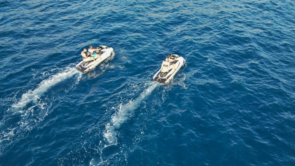 The tour includes drinks, snacks, snorkeling equipment, and the provision of one jet ski for 2 persons.
