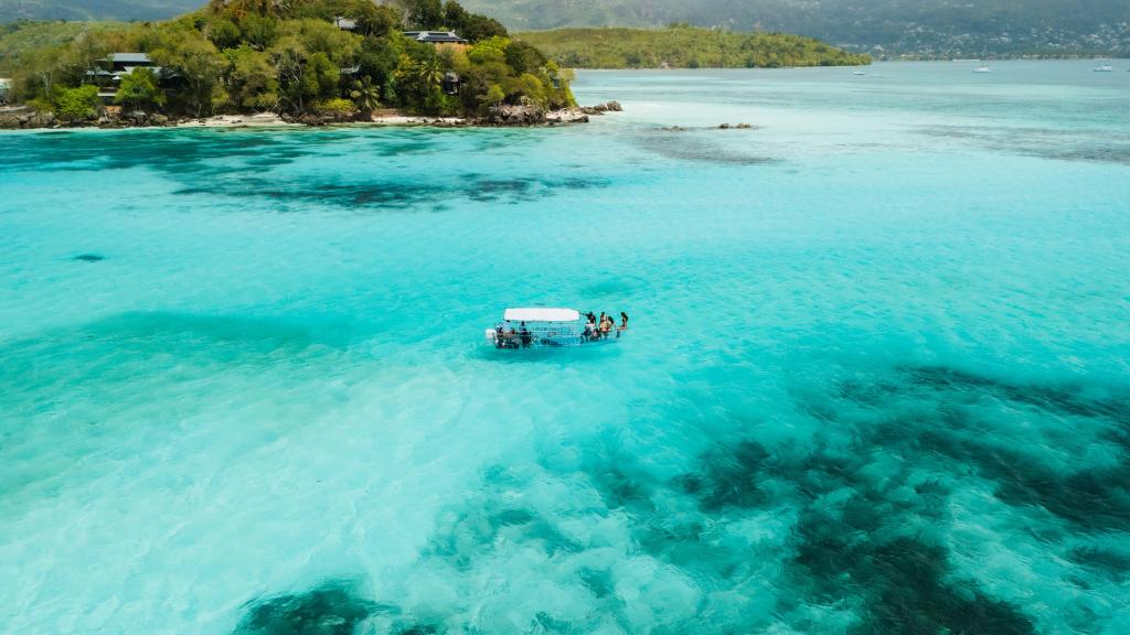 Step aboard the first fully transparent boat in the Seychelles and discover the underwater world in a truly unique way. During the 90-minute guided tour through the Sainte Anne Marine Park, you will experience colourful coral reefs, tropical fish, and crystal-clear waters directly beneath the boat. Guided by experienced professionals, you will also learn more about the delicate ecosystem of the park as well as the diverse flora and fauna of the region. The tour departs two times a day from Eden Island and is suitable for the whole family. You will have the opportunity to swim in the warm turquoise waters or simply relax on board. Thanks to the clear visibility through the transparent boat floor, you will enjoy perfect opportunities for unforgettable photos and lasting memories.