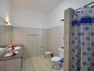 Les salles de bains sont à restaurer (Lavabo fendu, tuyauterie bruyante, douche avec un simple rideau )