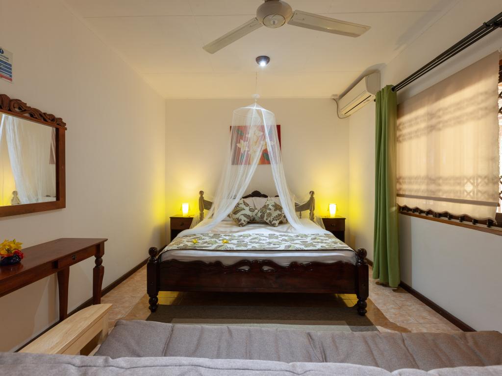 La « Casa Grande », une petite maison toute en style, se trouve au nord de Praslin, directement sur la plage Anse Boudin. De là, vous pourrez même apercevoir l’île voisine Curieuse. L’établissement séduit grâce à son emplacement privilégié et son jardin exotique idéal pour de longs barbecues en soirée.
