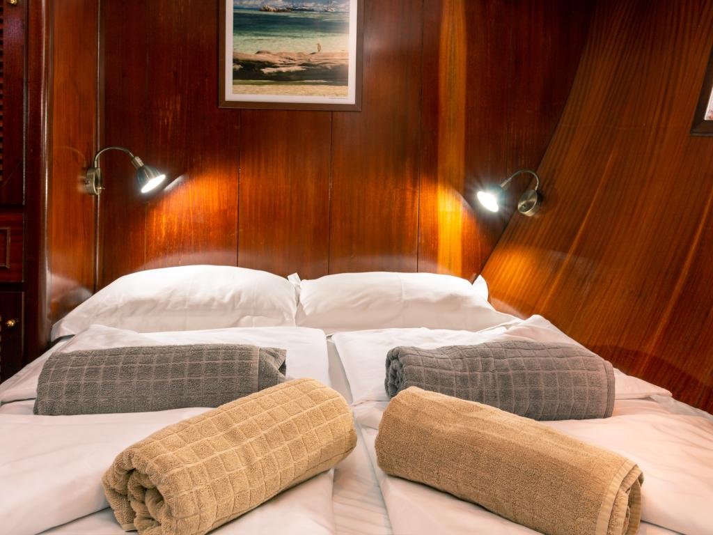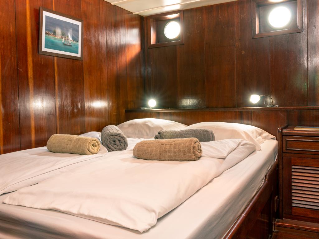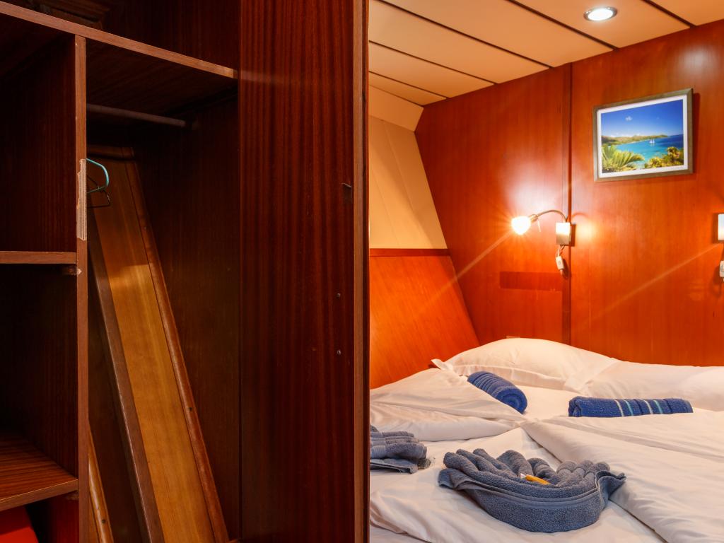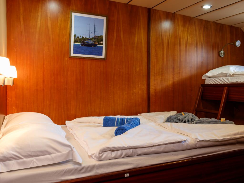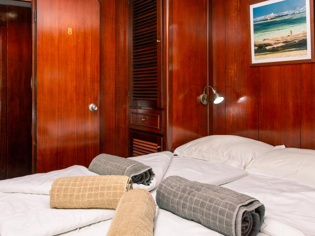 Translation (DE): GoogleTranslateLe séjour sur le voilier a été le point culminant de notre voyage, une île différente chaque jour et beaucoup de gens sympathiques à bord. Le bateau était propre et bien rangé, la nourriture était délicieuse. Au niveau du prix des boissons c'était vraiment cher, une bière à 0,2 pour 5€ + TVA. C'est dommage que nous n'ayons jamais fait de voile, ce n'est pas vraiment possible, l'équipage devrait faire l'effort au moins une fois.