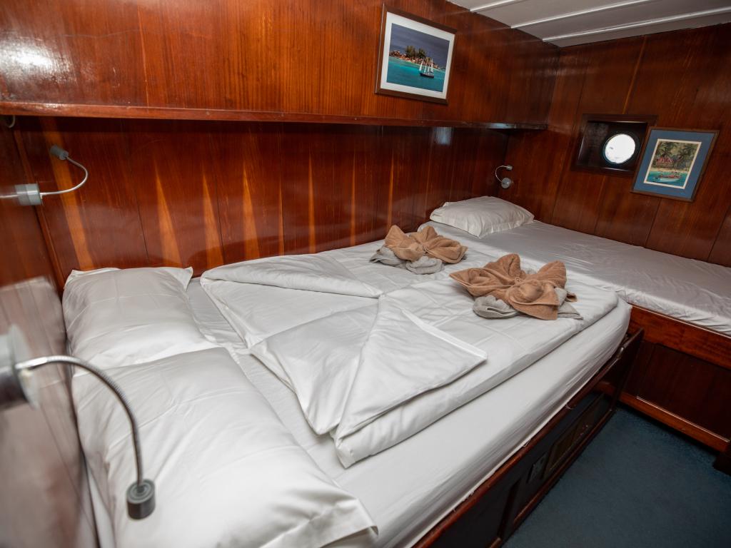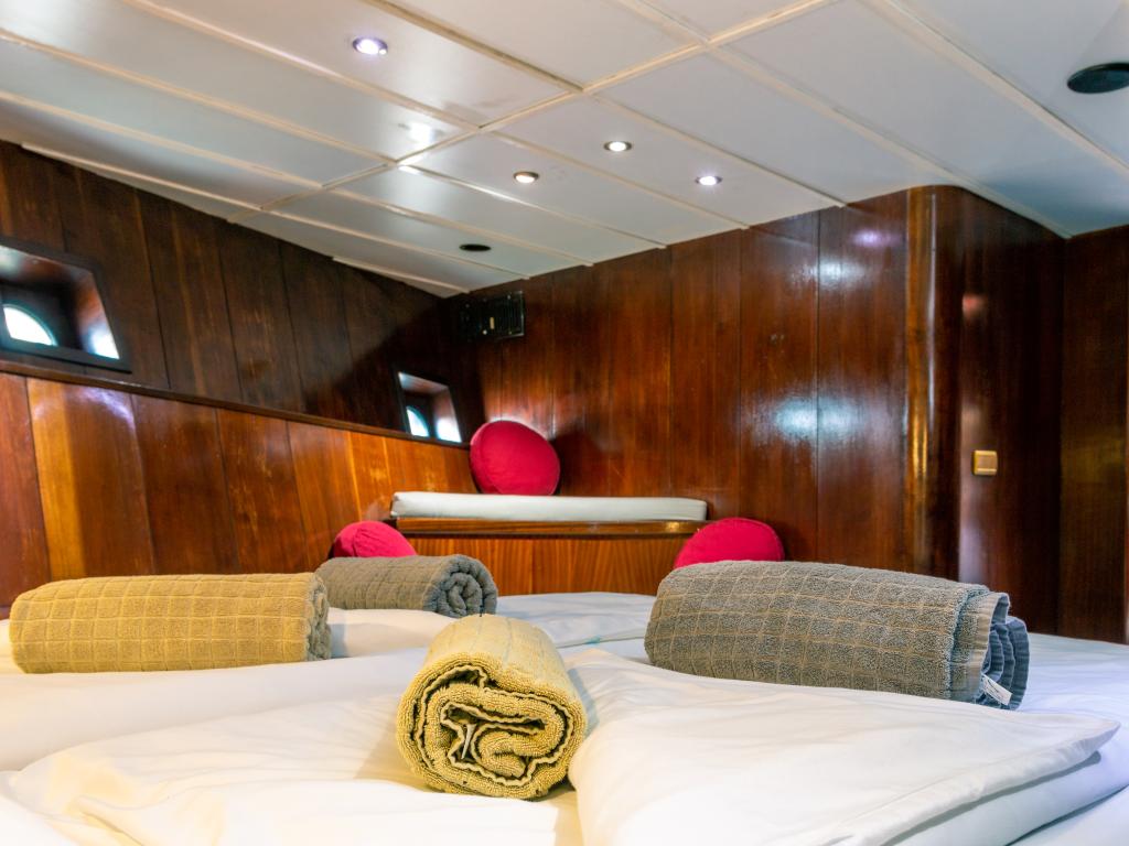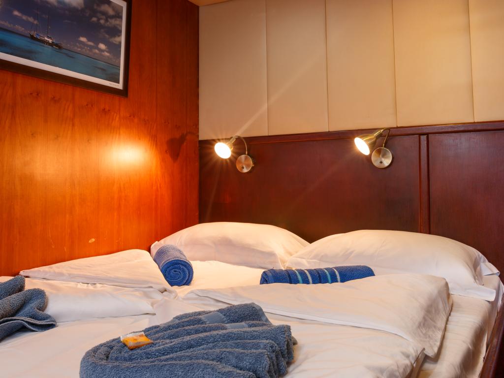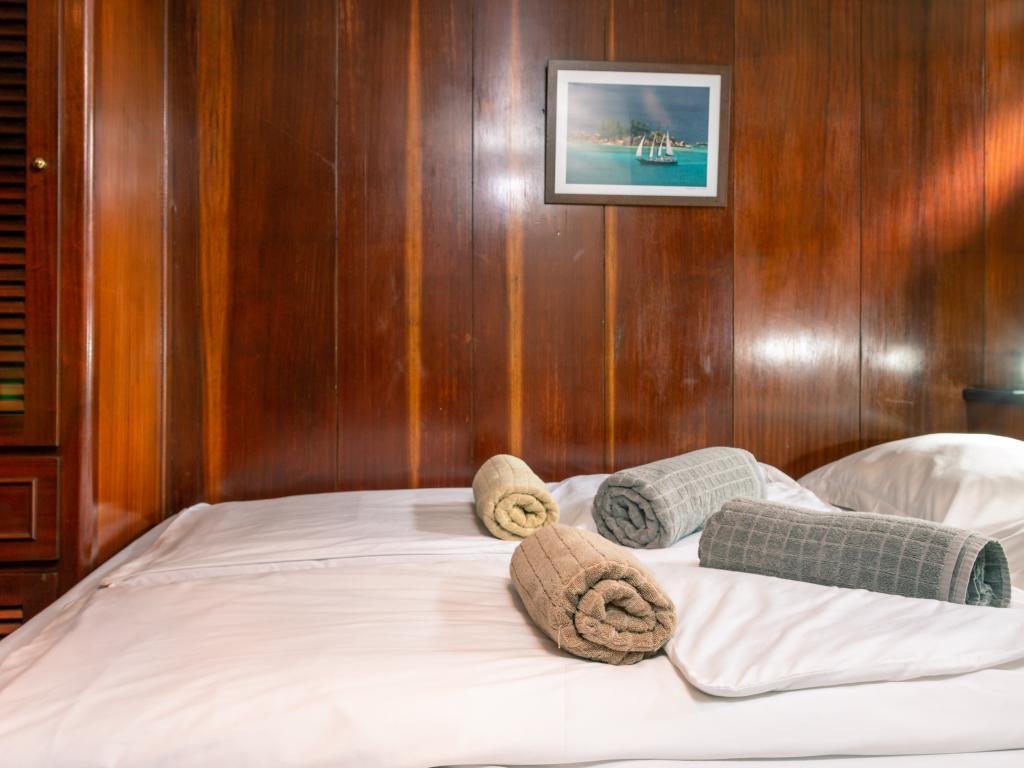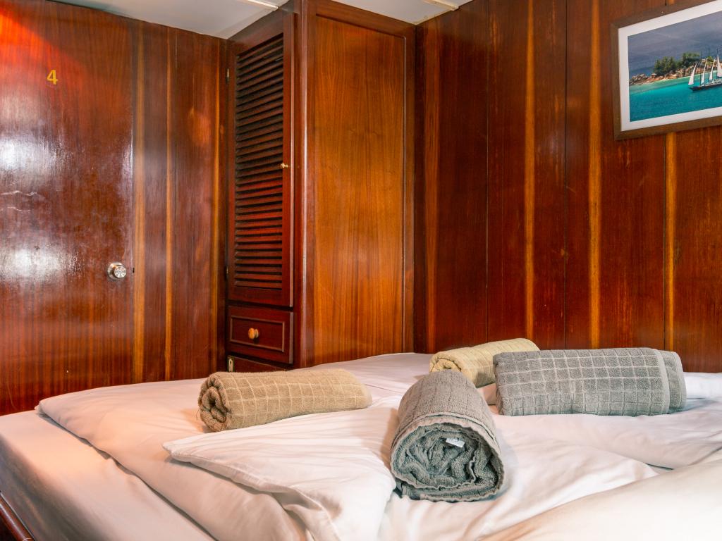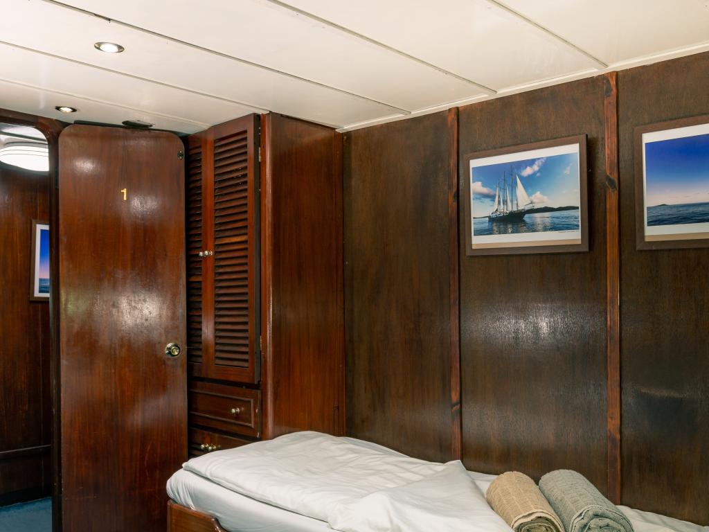 Translation (DE): GoogleTranslateLe séjour sur le voilier a été le point culminant de notre voyage, une île différente chaque jour et beaucoup de gens sympathiques à bord. Le bateau était propre et bien rangé, la nourriture était délicieuse. Au niveau du prix des boissons c'était vraiment cher, une bière à 0,2 pour 5€ + TVA. C'est dommage que nous n'ayons jamais fait de voile, ce n'est pas vraiment possible, l'équipage devrait faire l'effort au moins une fois.