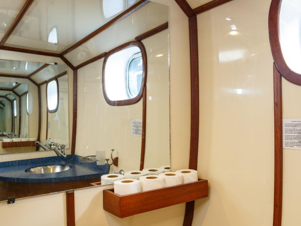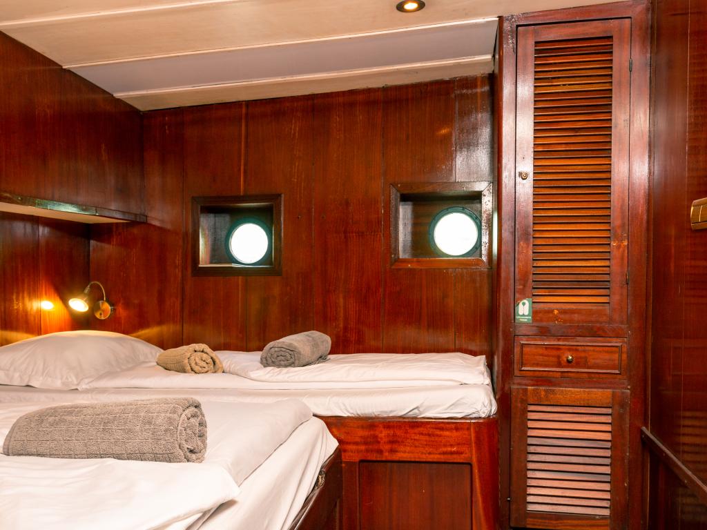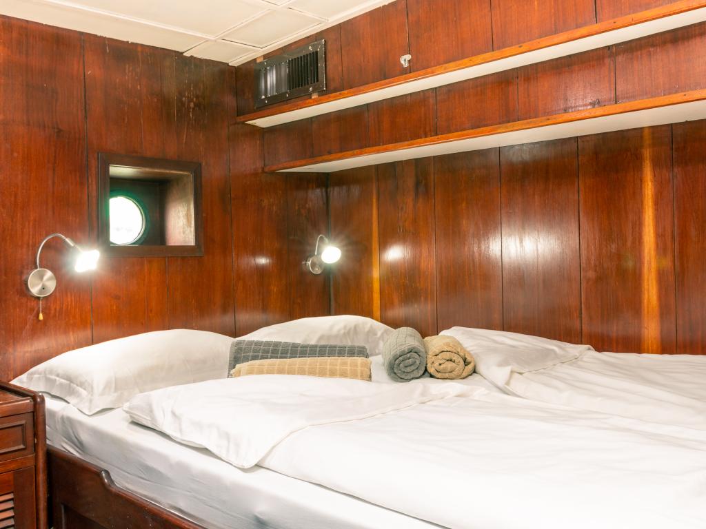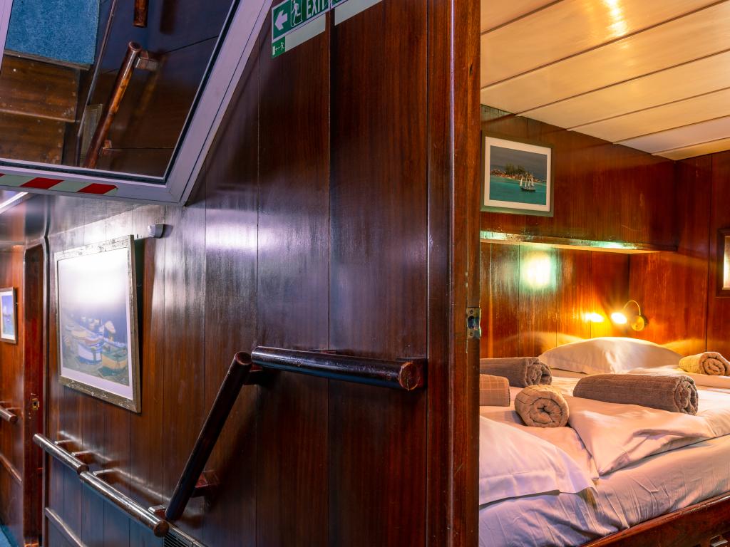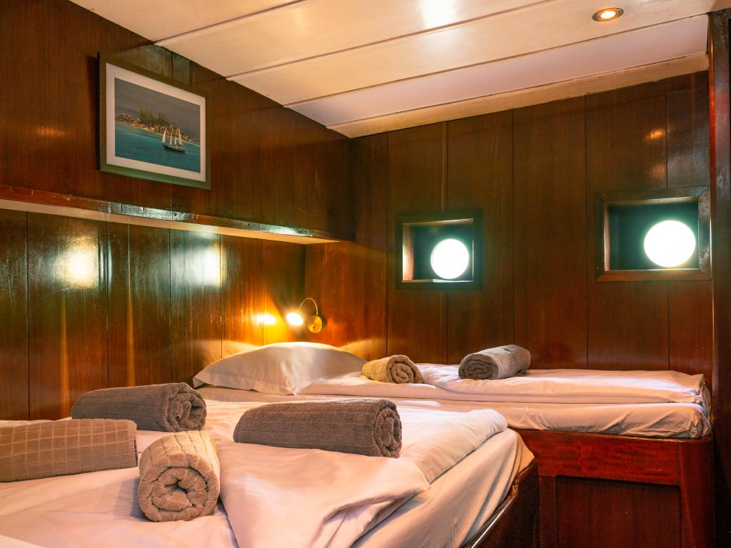 Translation (DE): GoogleTranslateLe séjour sur le voilier a été le point culminant de notre voyage, une île différente chaque jour et beaucoup de gens sympathiques à bord. Le bateau était propre et bien rangé, la nourriture était délicieuse. Au niveau du prix des boissons c'était vraiment cher, une bière à 0,2 pour 5€ + TVA. C'est dommage que nous n'ayons jamais fait de voile, ce n'est pas vraiment possible, l'équipage devrait faire l'effort au moins une fois.