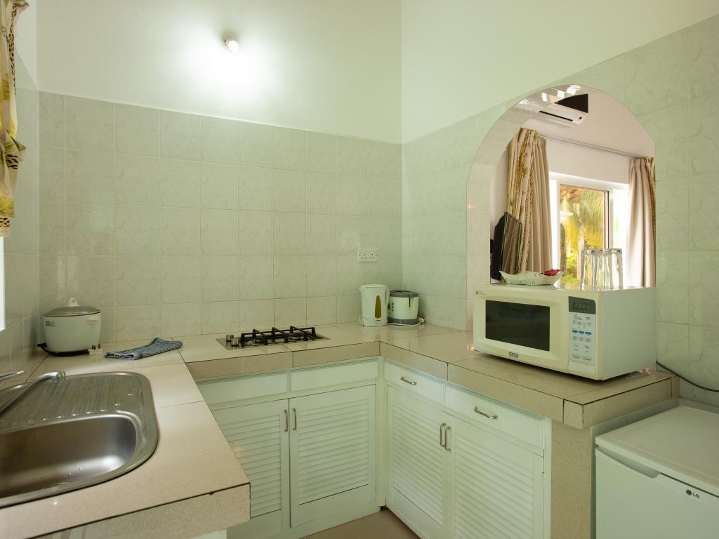 L'emplacement, dans un jardin tropical paisible mais proche des commodités, la présence de la dame est discrète et la propreté laisse à désirer... (des excréments de gecko... du moins je l'espère... dans la cuisine et d'autres choses jamais nettoyées). Le logement dans le complexe est correct mais très sombre à l'intérieur.