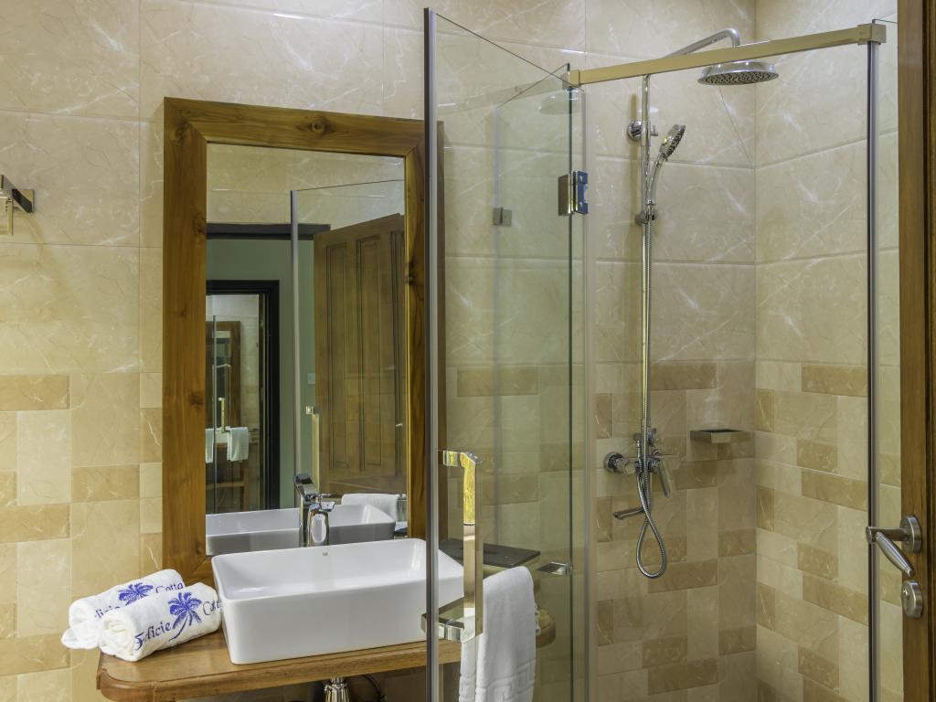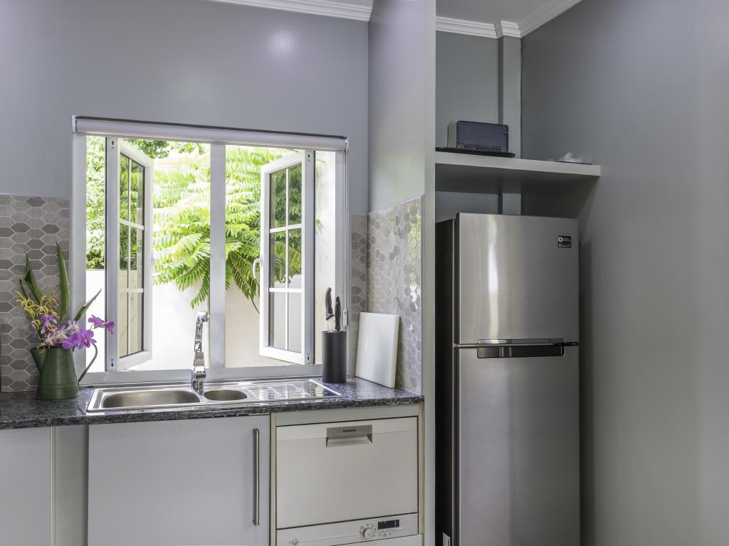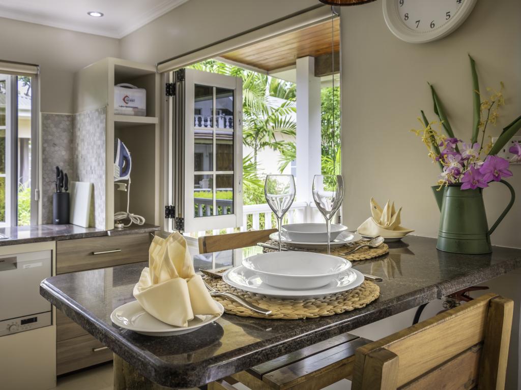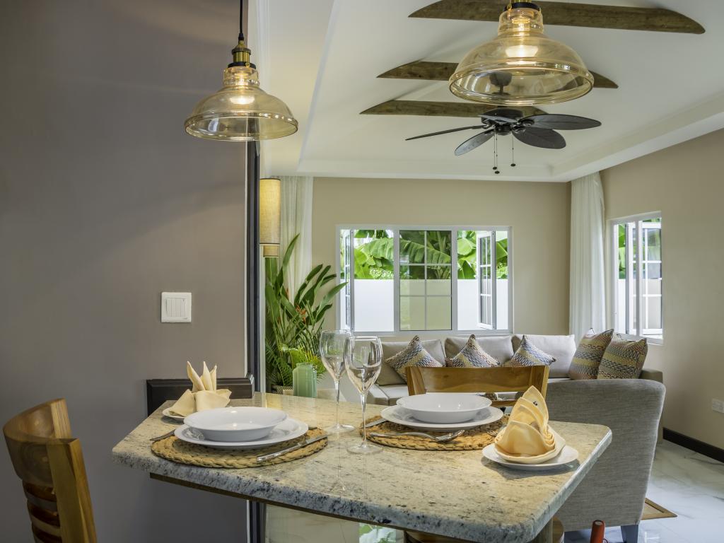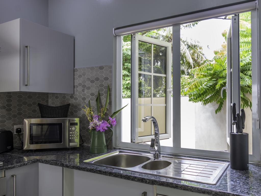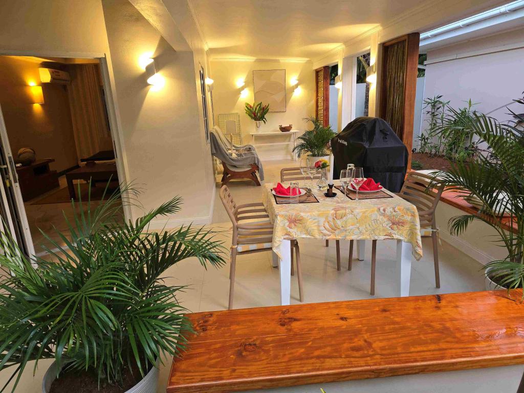 Une oasis de verdure entre une plage paradisiaque et des boutiques : Felicie Cottage & Residence dans le sud-est de Mahé offre la combinaison idéale pour ceux qui souhaitent passer des vacances tranquilles à deux (ou à trois), sans renoncer au confort. Une piscine commune, une plage accessible à pied ainsi que des restaurants, un arrêt de bus et des boutiques au coin de la rue. Que demander de plus ?