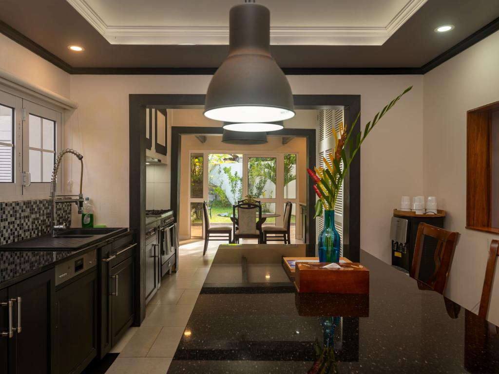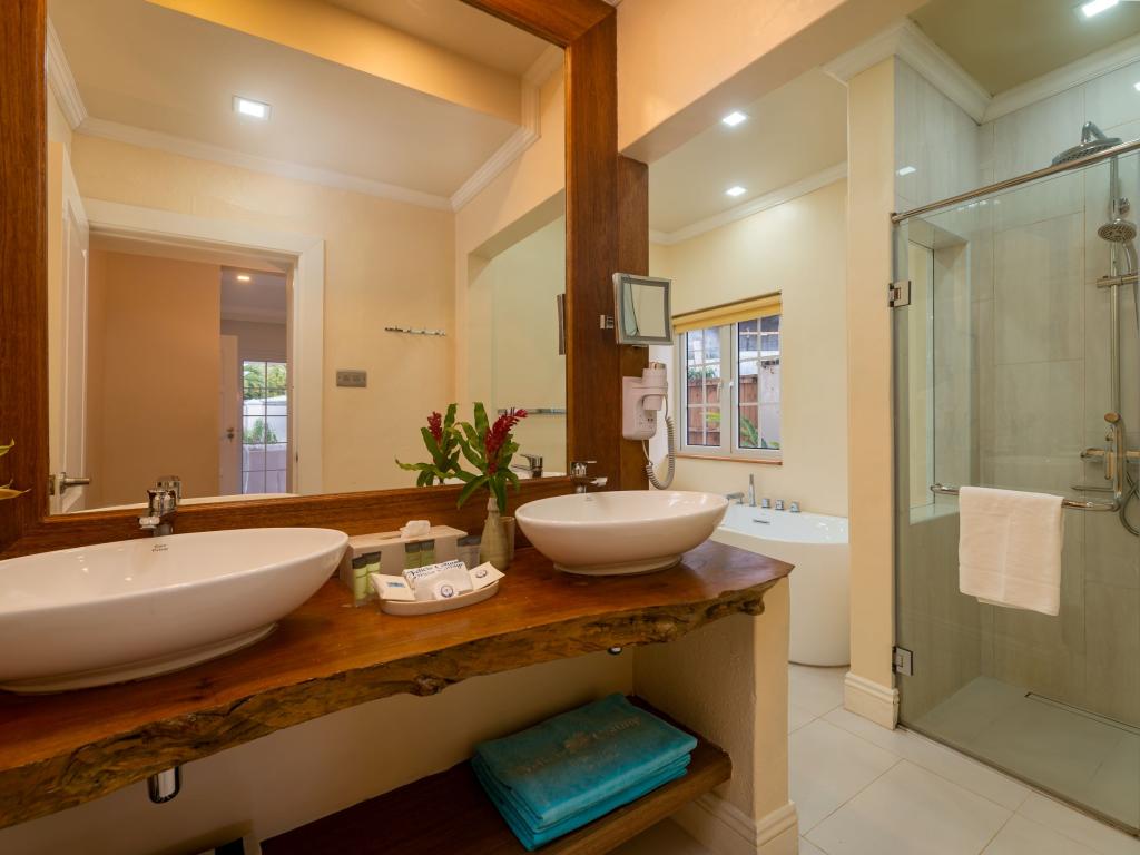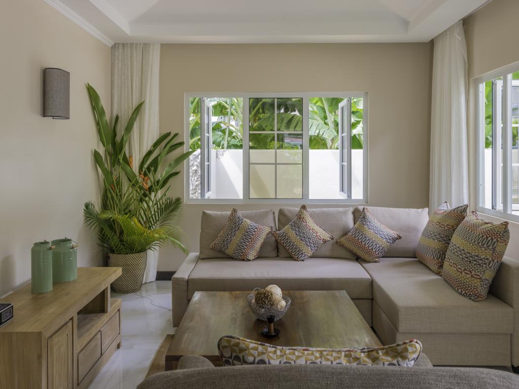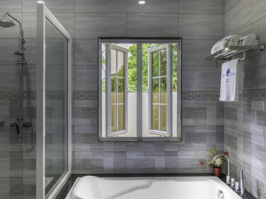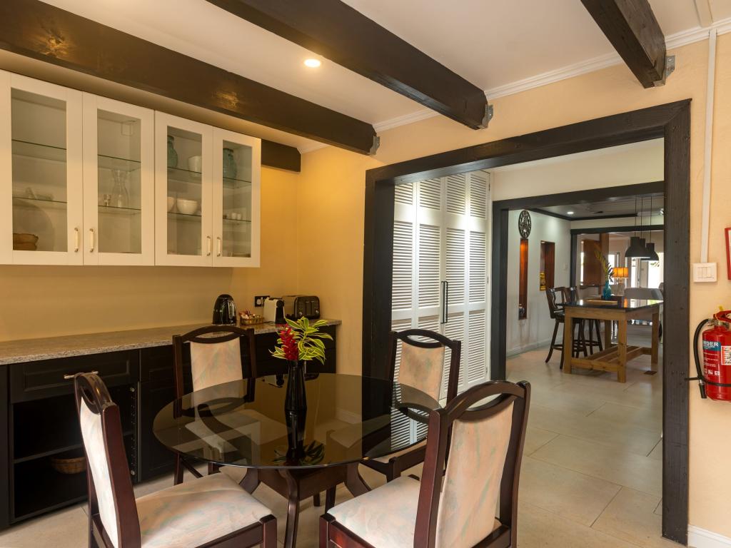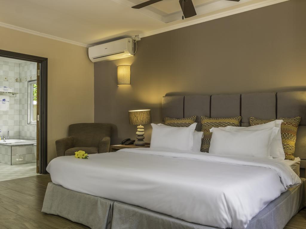 Une oasis de verdure entre une plage paradisiaque et des boutiques : Felicie Cottage & Residence dans le sud-est de Mahé offre la combinaison idéale pour ceux qui souhaitent passer des vacances tranquilles à deux (ou à trois), sans renoncer au confort. Une piscine commune, une plage accessible à pied ainsi que des restaurants, un arrêt de bus et des boutiques au coin de la rue. Que demander de plus ?