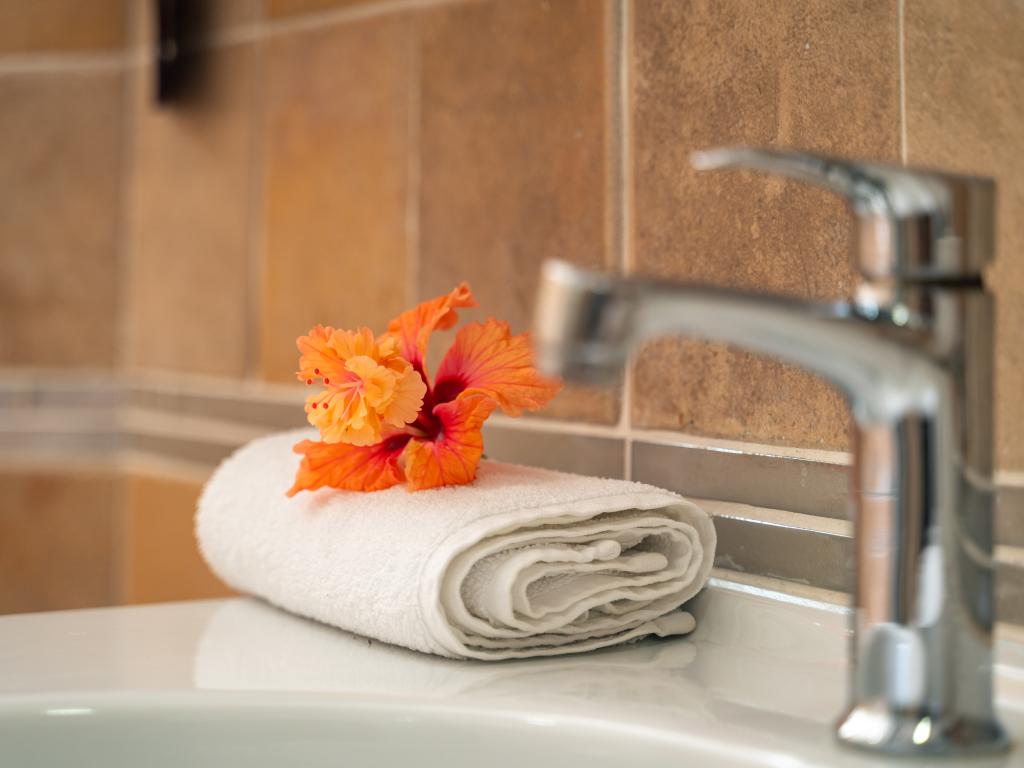 Très grandes chambres avec coffre-fort et climatisation dans la chambre. Bon équipement. Malheureusement, pas de sèche-cheveux disponible. Et l'appartement voisin n'était séparé que par une porte communicante, parfois très bruyante.
