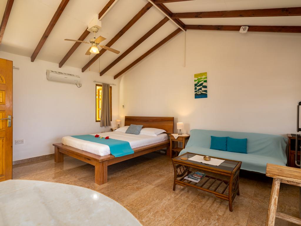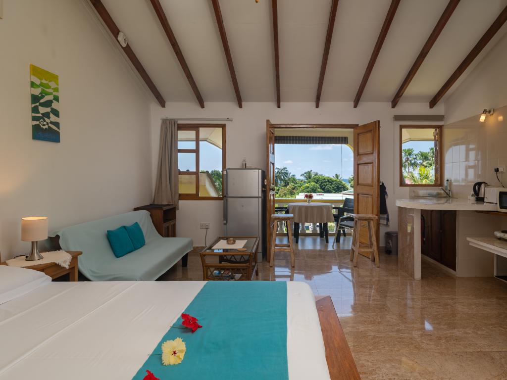 Situé à 10/15 min au sud de l’aéroport de Mahé, il est très bien placé pour visiter l’île.