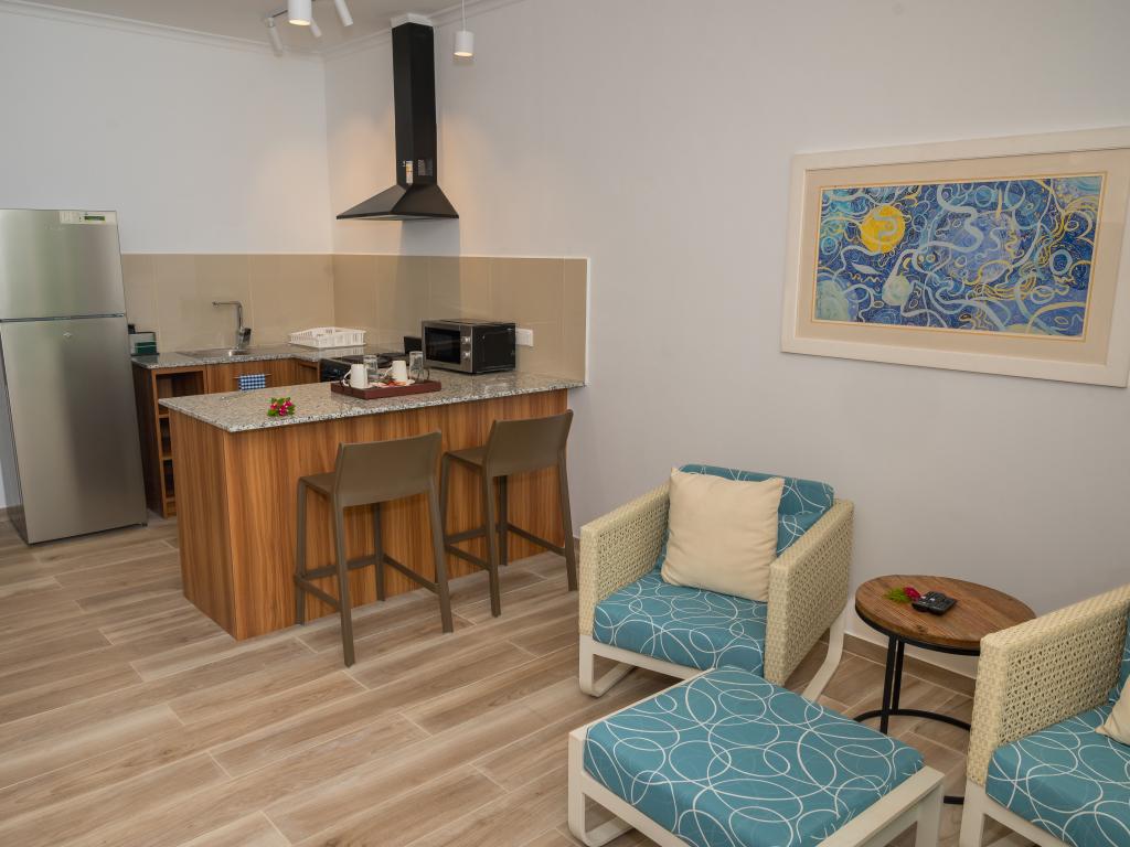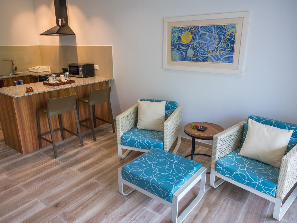 Parfait en tous points. Seul petit bémol : l’absence d’un accès direct à la plage depuis l’hôtel. Pas de bar intégré. La salle à manger se trouvait à l’arrière du complexe, mais la plage était fantastique et l’eau magnifique. Ce fut une expérience vraiment unique pendant nos vacances. Service impeccable, personnel très accueillant. Une courte promenade le long de la plage mène à la ville voisine, où l’on trouve restaurants, supermarchés et plats à emporter. Plusieurs options pour se restaurer et se désaltérer directement sur la plage.