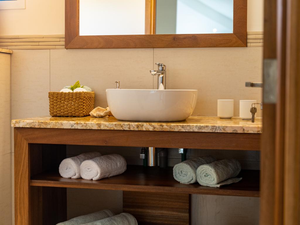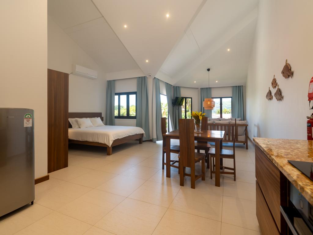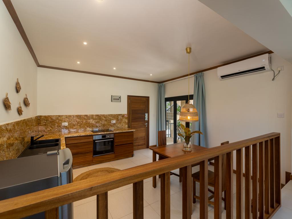 Accueil très sympathique de Silvia, la sympathique propriétaire. Elle a tout expliqué en détail et a été très utile. Le complexe est situé sur une colline dans un environnement calme. Un portail ferme le complexe d'appartements, vous bénéficiez d'une télécommande pour le portail. Tout était très bien entretenu et attrayant. Vous pourrez vous garer facilement sur la propriété ou sur l'accotement à l'extérieur de la propriété. Les cartouches dans la cuisine étaient super pour pouvoir boire l'eau du robinet. Notre appartement était très, très agréable et joliment meublé. Un ventilateur dans le salon/cuisine aurait été très utile. La climatisation dans la zone nuit était très, très silencieuse et facile à régler, mais nous dormons toujours avec la fenêtre ouverte et avions notre moustiquaire au-dessus du lit. Merci de ne rien coller sur les murs, nous avons trouvé une autre solution pour fixer la moustiquaire. Le lit était très, très confortable, enfin pas de matelas dur. Nous avons très bien dormi. Pour nous rendre au centre, nous avons pris une voiture de location ; c'était trop loin pour nous de marcher. Autre conseil : si vous souhaitez vous rendre à Anse Major, il est souvent décrit que vous pouvez d'abord marcher puis reprendre un bateau pour revenir. Silvia nous a donné le numéro de téléphone du skipper du bateau-taxi. Il est ensuite venu nous chercher à la jetée de Bel Ombre pour que nous n'ayons pas à marcher. Merci pour ce beau séjour