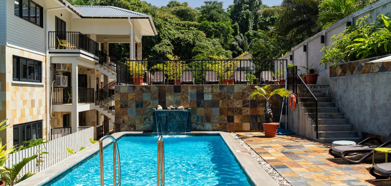Bienvenue au paradis ! Avec leur aménagement intérieur moderne et élégant, les Lodoicea Apartments vous accueillent sur la splendide côte nord de l’île de Mahé. Spacieux, ils offrent tout ce que vous pourriez souhaiter pour un séjour en toute indépendance. De plus, la piscine d’eau salée de l’établissement et sa terrasse invitent à la détente. Outre de nombreux commerces et restaurants, les environs comprennent les superbes plages de Beau Vallon et de Marie-Laure.