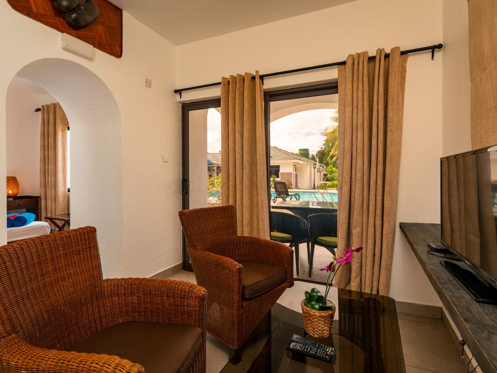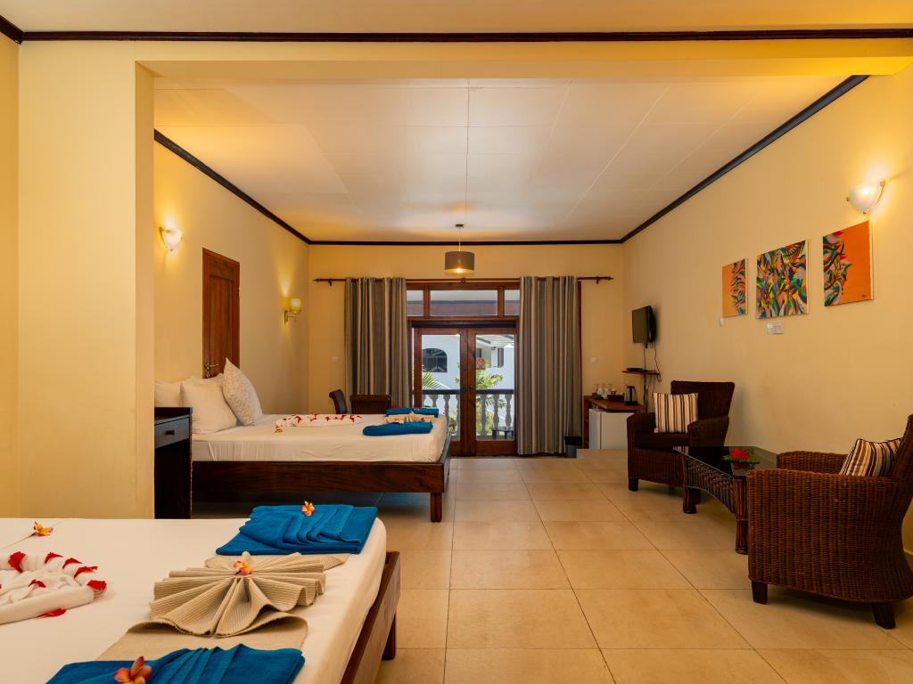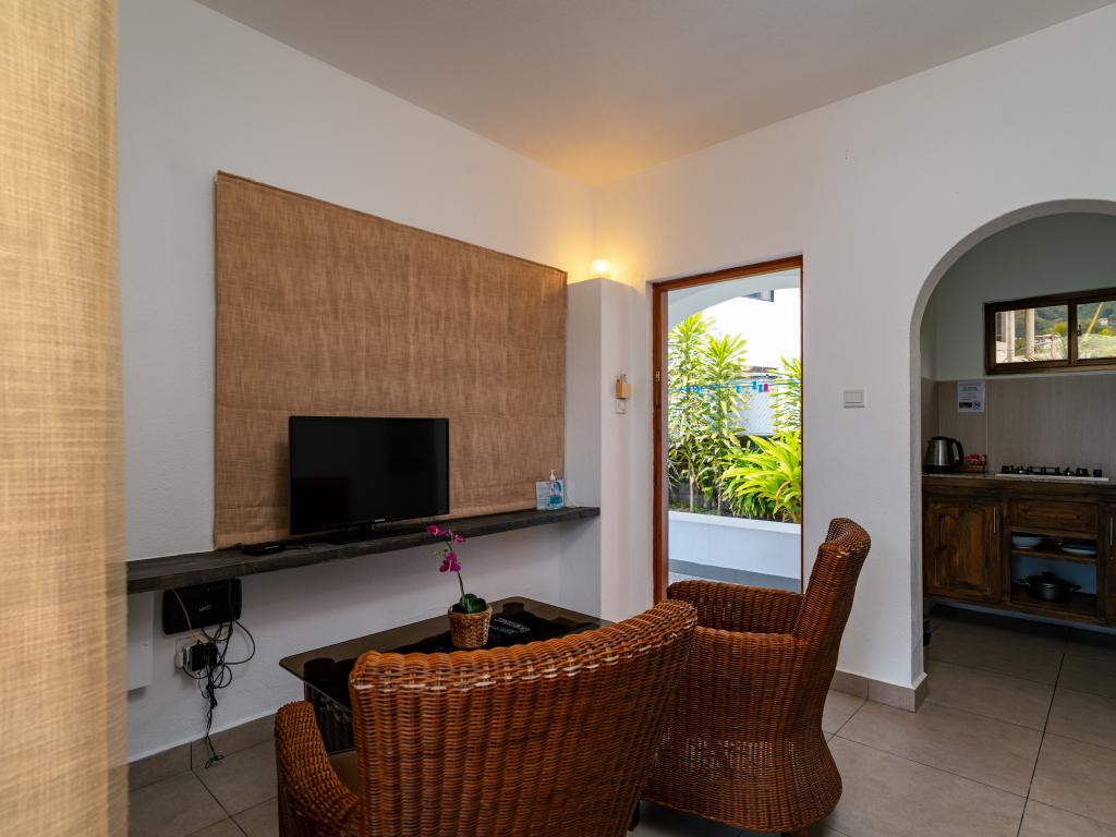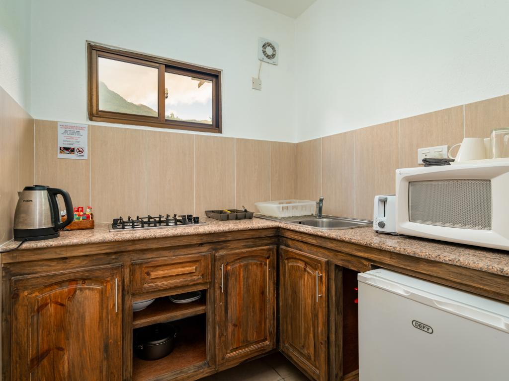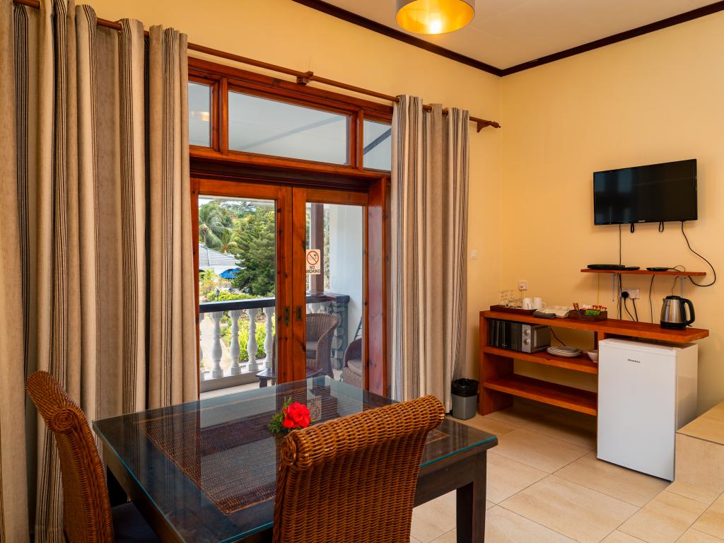 Translation (DE): GoogleTranslateUn endroit charmant avec un petit appartement, un salon et une cuisine entièrement équipée. Belle piscine et à deux pas de la magnifique plage de Beau Vallon. Personnel très accueillant et serviable.