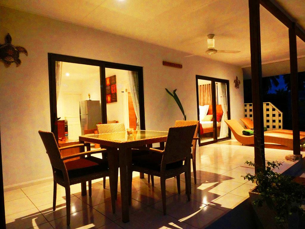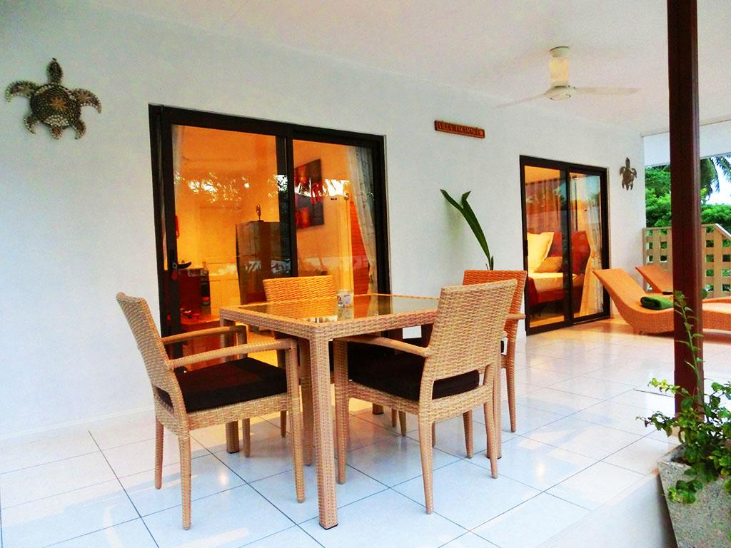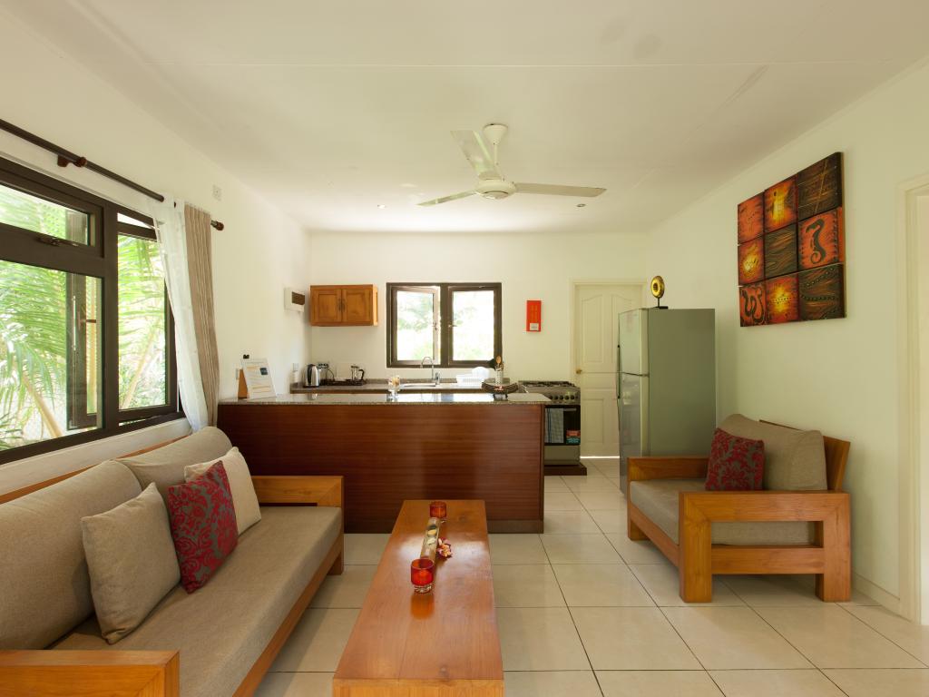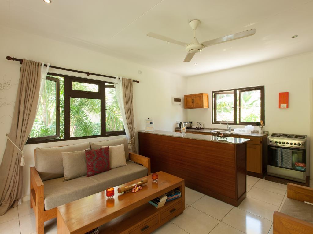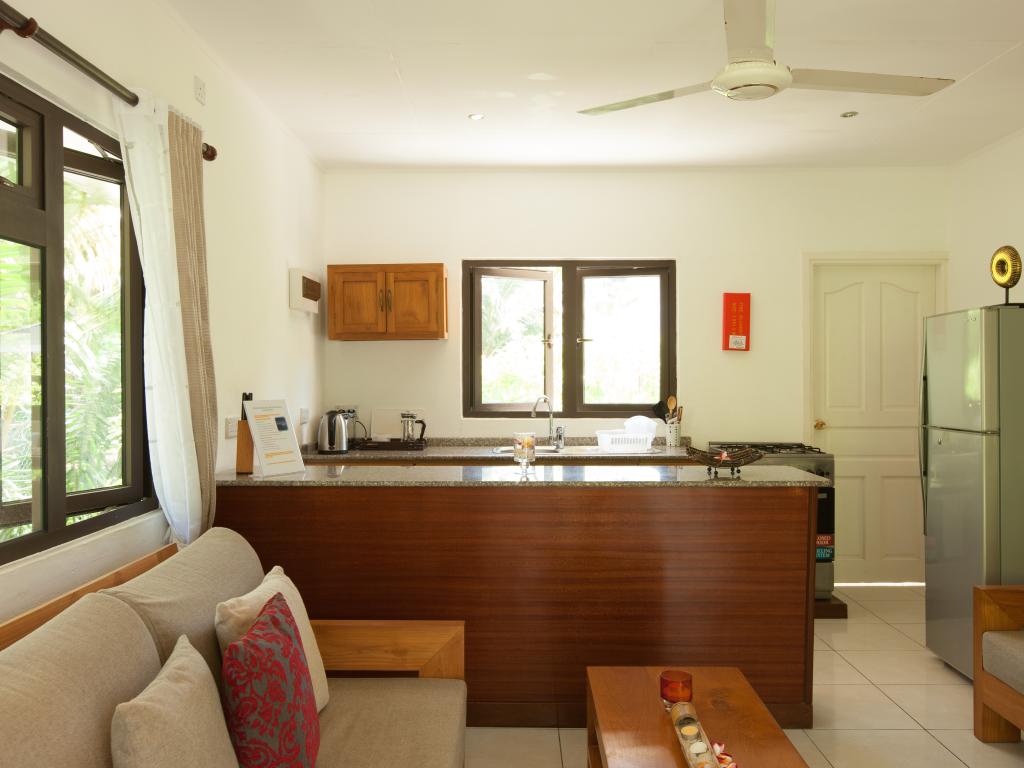 Super logement avec un espace généreux et une belle véranda. Malheureusement, nous avions l'arrière des deux villas et malheureusement il y avait un énorme problème de moustiques. En conséquence, la véranda (malgré le ventilateur) ne pouvait être utilisée que de manière très limitée (Autan n'a forcé qu'un sourire fatigué aux moustiques). Sinon le logement est magnifique, très calme et a un accès direct à la mer. Derrière la maison se trouvent divers arbres fruitiers (cocotier, manguier, bananier, goyave, etc.). Vous pourrez facilement vous restaurer (après avoir fait du shopping à Eden Island) ou utiliser le restaurant de l'Hôtel L'Habitation pour le petit-déjeuner et/ou le dîner. Nous avons profité de l'offre de dîner à plusieurs reprises et pouvons la recommander vivement. En plus du snorkeling et des promenades sur la plage, l'île au Cerf est un excellent endroit pour visiter Mahé, car cette île est accessible en seulement 5 à 10 minutes en bateau-taxi.