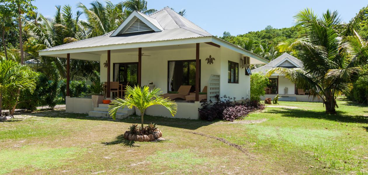 Ces villas, construites en 2012, se trouvent sur la « Takamaka Beach », plage privée du même nom, et offrent des vacances romantiques.