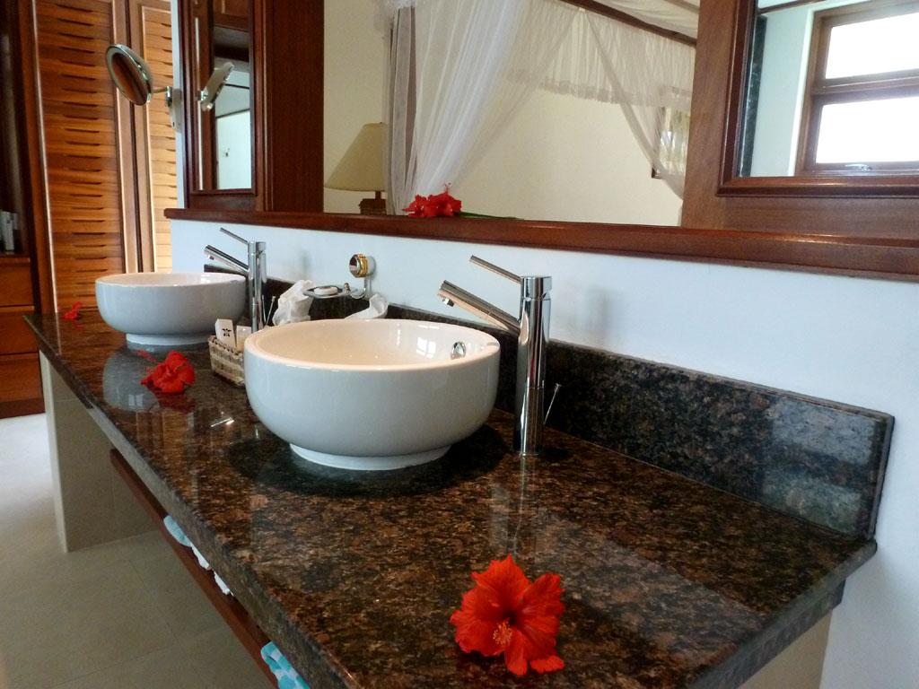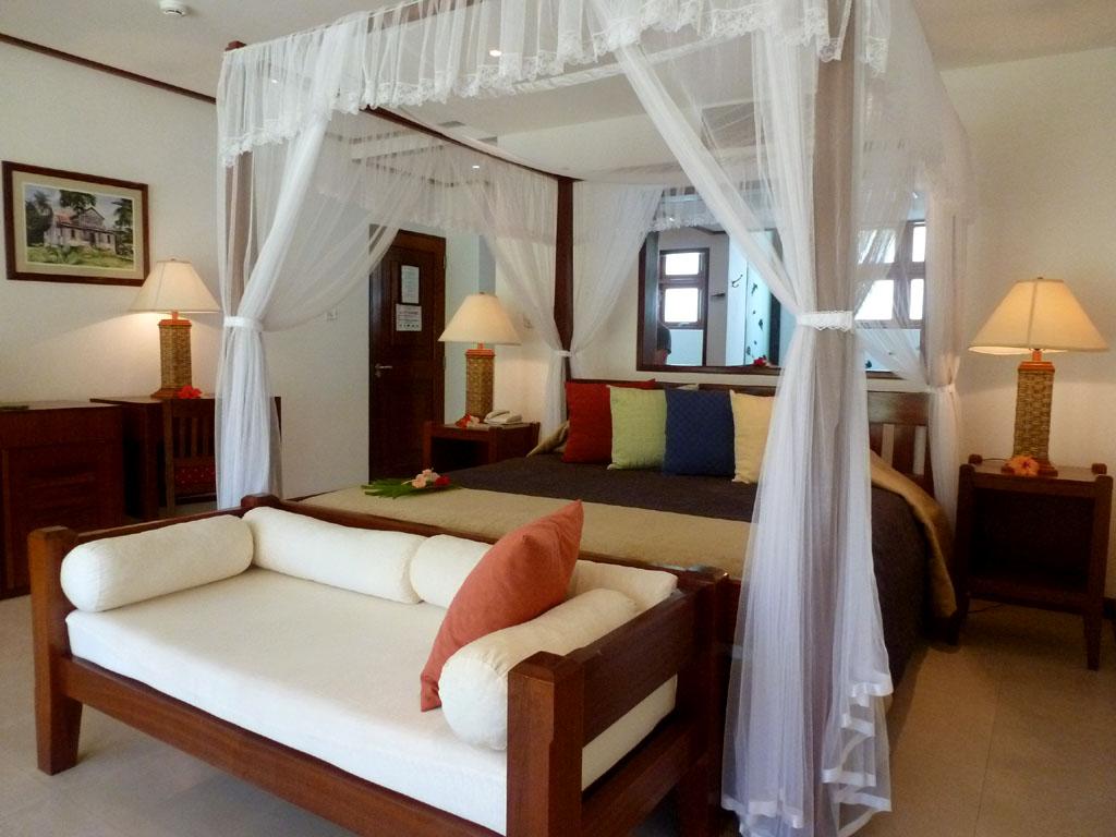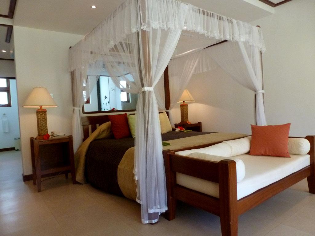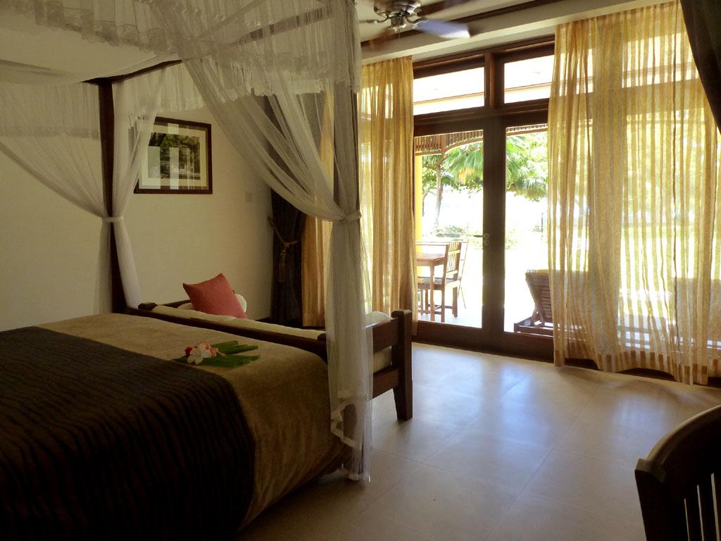 La « Réserve » est un hôtel très moderne et très haut de gamme situé directement sur la plage de rêve « Anse Petite Cour » au nord de Praslin.