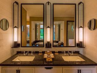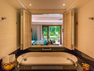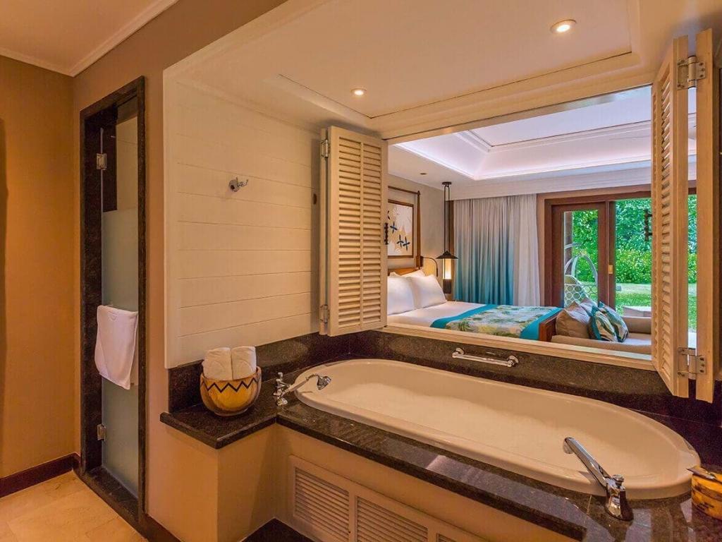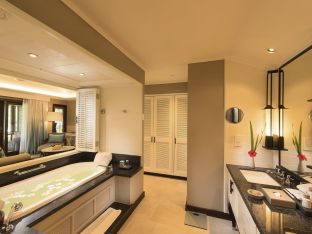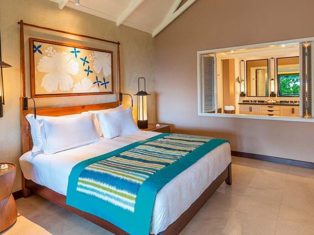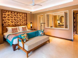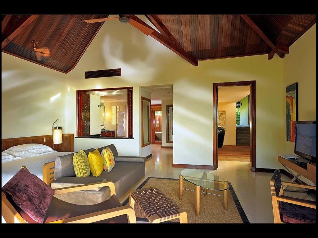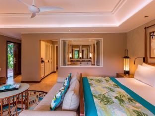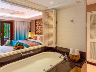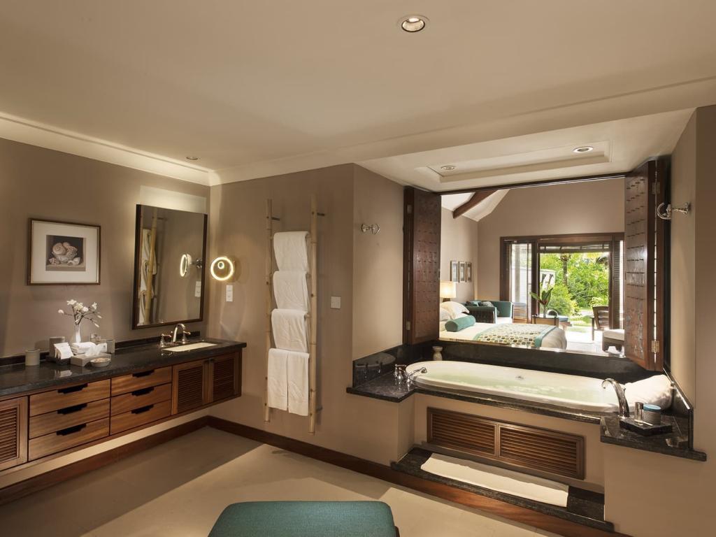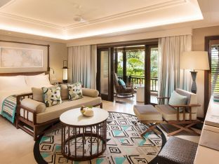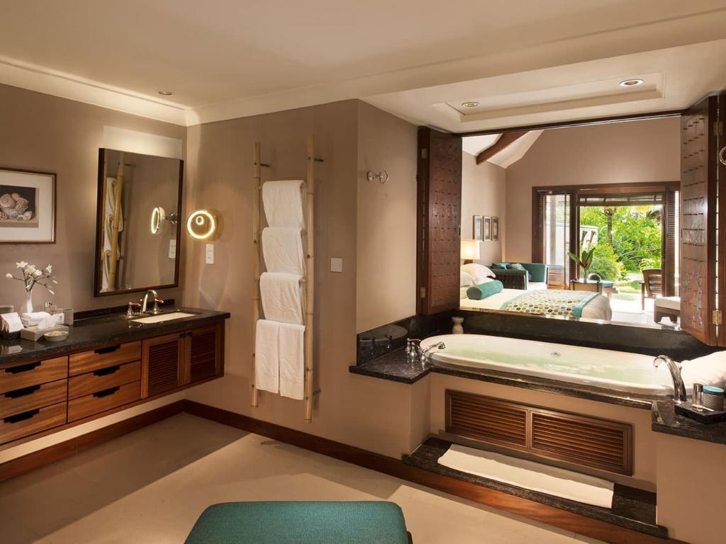 Un magnifique hôtel de luxe avec des chambres fantastiques. Une superbe plage de sable fin juste en face, avec des transats confortables et des structures ombragées. Personnel très aimable et attentionné. Organisation impeccable. Un petit-déjeuner buffet irréprochable. Le soir, des buffets à thème sont proposés au restaurant « Legends » (Mille et Une Nuits, indien, créole, asiatique, etc.) : un choix varié et excellent. Un soir, nous avons dîné au restaurant à la carte « The Nest » : nous avions de plus grandes attentes quant à la qualité des plats – nous n’y retournerions pas lors d’un prochain séjour. Les toilettes ne sont pas directement au restaurant ; il faut marcher un peu jusqu’au hangar à bateaux. Globalement, c’est cher. Mais le rapport qualité-prix est excellent – c’est particulièrement intéressant si vous jouez au golf ou souhaitez pratiquer des sports nautiques non motorisés, dont certains sont inclus. Les séances de yoga étaient gratuites seulement deux fois par semaine à heures fixes ; toutes les autres étaient payantes. Nous nous attendions à ce que ces prestations soient incluses dans un complexe hôtelier aussi luxueux. Quatre jours de lune de miel merveilleux (une bouteille de vin mousseux et une corbeille de fruits nous attendaient en guise de surprise dans la chambre) !