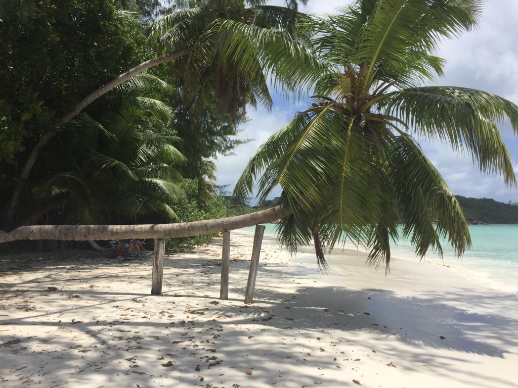 Der anliegende Strand ist sehr schön, es gibt kostenlose Liegen und man wird ständig angequatscht, ob man noch ein Taxiboot benötigt (wir haben schon überlegt, ob wir uns ein Schild basteln). Wir haben direkt am Strand einen Ausflug zu den Schildkröten nach Curieuse und zum Schnorcheln nach St. Pierre inklusive Lunch am Strand für 55 Euro p.P. gebucht und es hat uns gut gefallen. Das Gelände mit den vielen freilaufenden Riesenschildkröten auf Curieuse war beeindruckend, wobei es auch nochmal toll war, später auf La Digue einfach so Besuch von einer freilebenden Riesenschildkröte am Anse Severe zu bekommen.