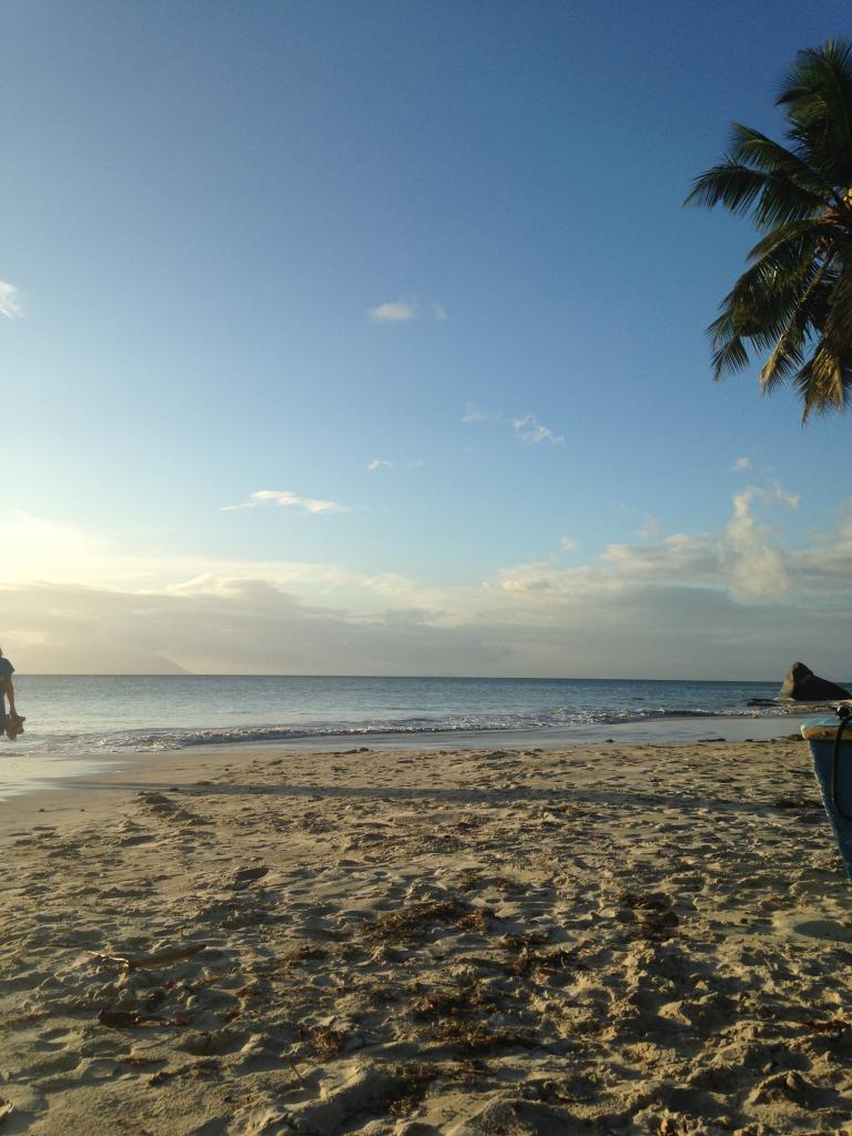 Le deuxième jour on avait loué des vélos et donc mon mari a essayé de pêcher à Anse Patates, et là des jeunes locaux sont venus parler avec nous, m’offrir une noix de coco (juste le jus la coco pas mure). C’était encore un moment riche en échanges !