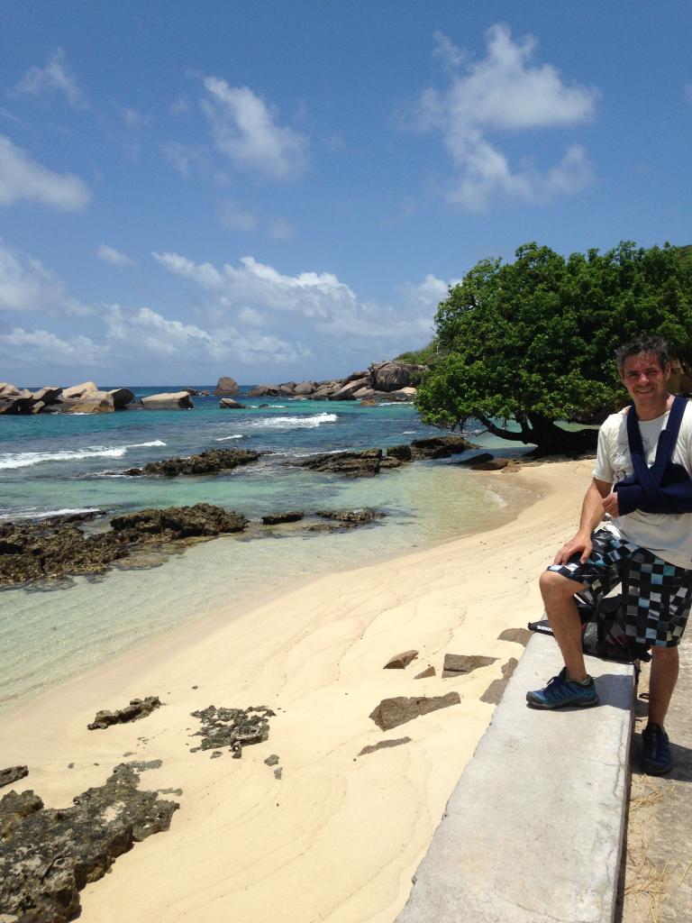 Nous nous sommes baignés à Anse Marron, magnifique ! il a pu nous parler du pays, des traditions… Grâce à ces échanges le soir nous sommes allés manger de la Chauve-souris (plat des Seychelles BAT CURRY).