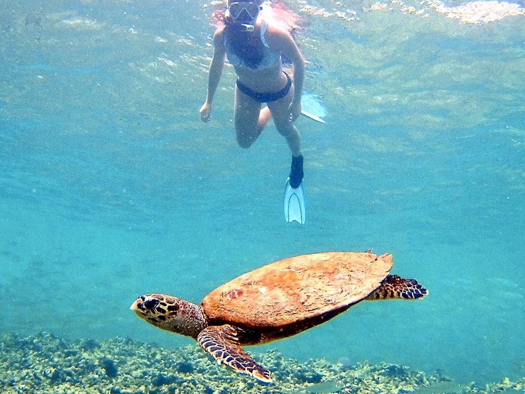 Place à la découverte et aux rencontres en snorkeling sous l’eau avec cette faune riche et les stars sur terre, les tortues géantes à Curieuse.