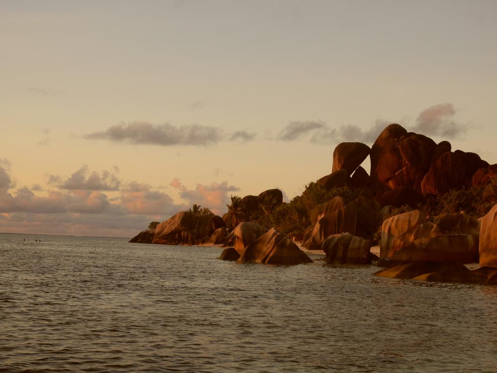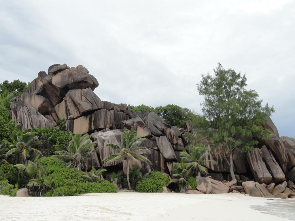 Des tortues, nous en verrons également dans le parc naturel, celle-ci sont terrestres, centenaires et énormes. Ce Parc donne également accès à une plantation de vanille, une fabrique artisanale d’huile de coco, avec son pressoir à bœuf. Ainsi que la fameuse case où fut tourné le film Emmanuelle. C’est aussi le point d’accès à l'Anse Source d'Argent, le joyau de l’ile, le coucher de soleil y teinte les rochers en rouge. On verserait une larme tellement c’est beau.