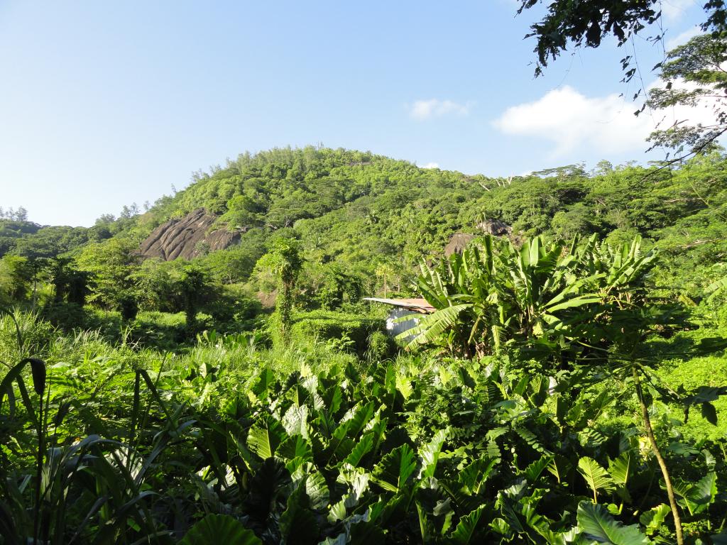 Nous faisons également une escapade en forêt pour accéder au Nid d’Aigle, le point culminant de l’ile, ça se mérite, environ 300 mètres de dénivelé sur quelques kilomètres, ça grimpe. Le paysage en vaut la peine, on a une vue panoramique sur les iles voisines, dont Praslin. Il y a même des prunes de France pour se désaltérer, petit fruit sauvage très douceâtre. Les rouges sont-elles meilleures que les blanches ? Les avis sont partagés.
